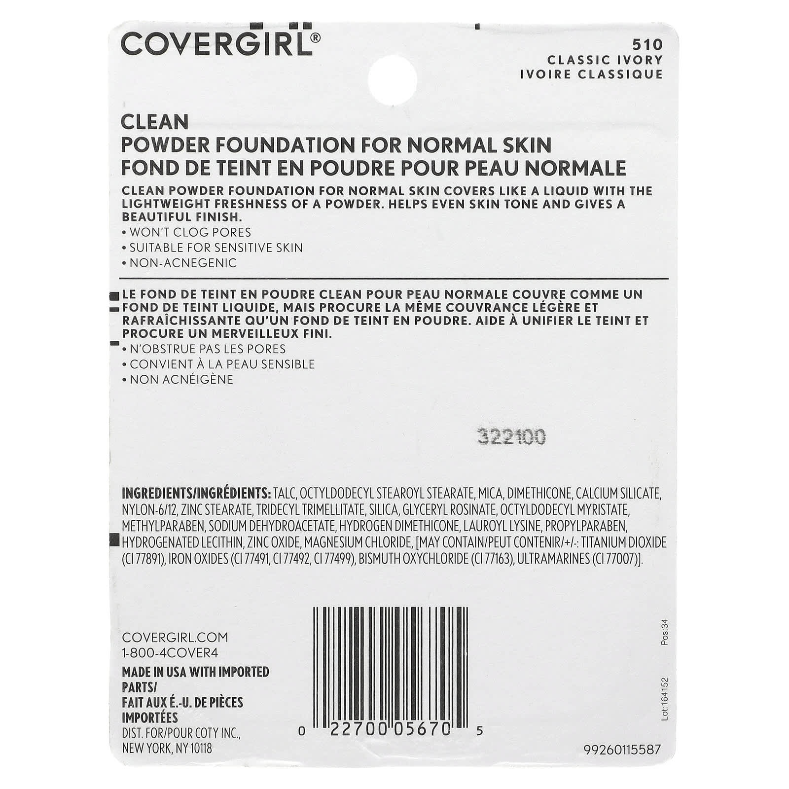Covergirl, Clean, тональная пудра, оттенок 510, слоновая кость, 11,5 г (0,41 унции)