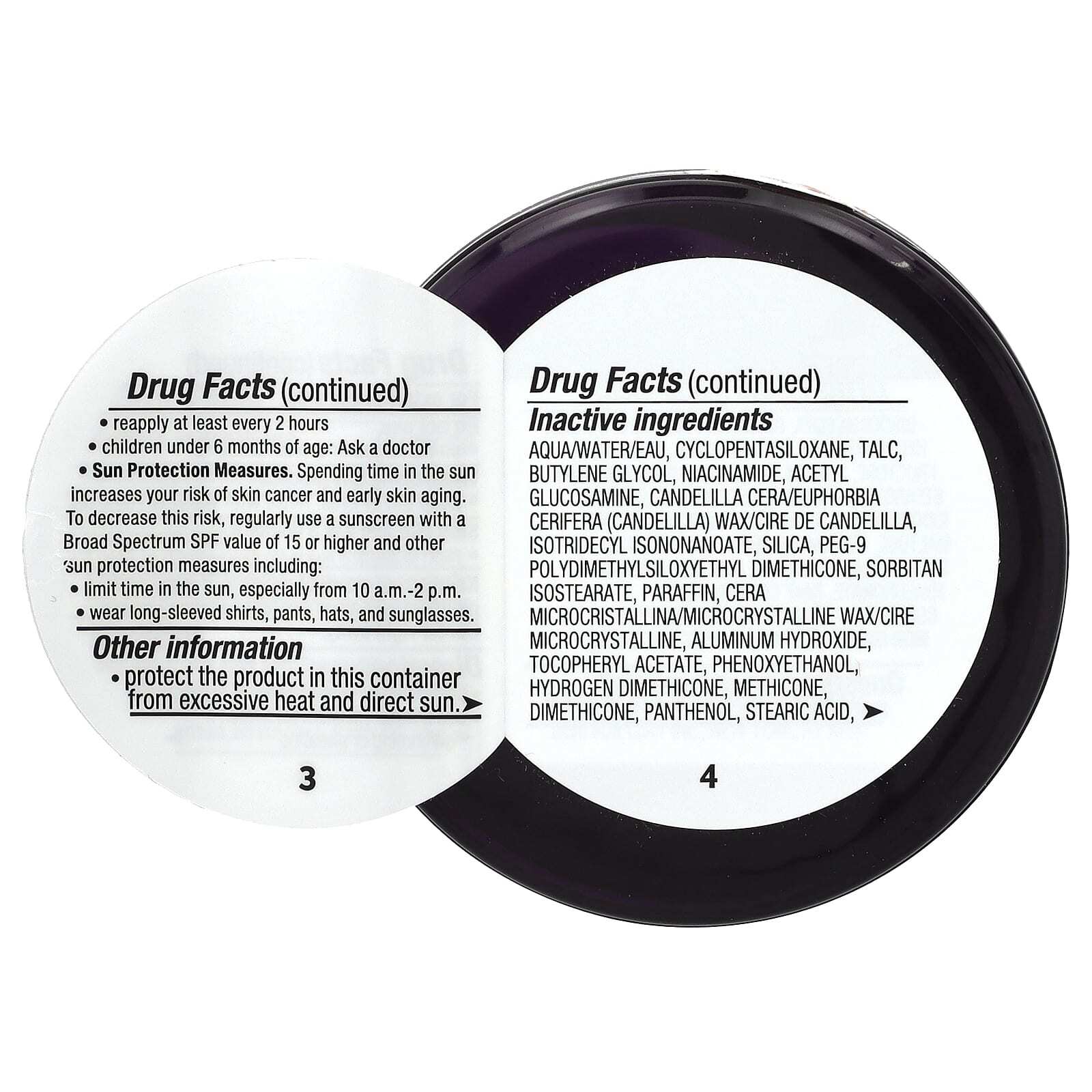 | Вспомогательные ингредиенты: Вода, циклопентасилоксан, тальк, бутиленгликоль, никотинамид, ацетилглюкозамин, канделильский воск (Candelilla cera/Euphorbia cerifera), изотридециловый изононаноат, диоксид кремния, ПЭГ-9 полидиметилсилоксиэтил диметикон, сорбитан изостеарат, парафин, микрокристаллический воск, микрокристаллический воск, алюминий гидрат аллантоин, мальтоза, хлорид натрия, лактат натрия, натрия пирролидонкарбонат, трегалоза, глюкоза, гиалуронат натрия Может содержать+/-: Диоксид титана (CI 77891), оксиды железа (CI 77491, CI 77492, CI 77499). Произведено в США с использованием ингредиентов из других стран. | |