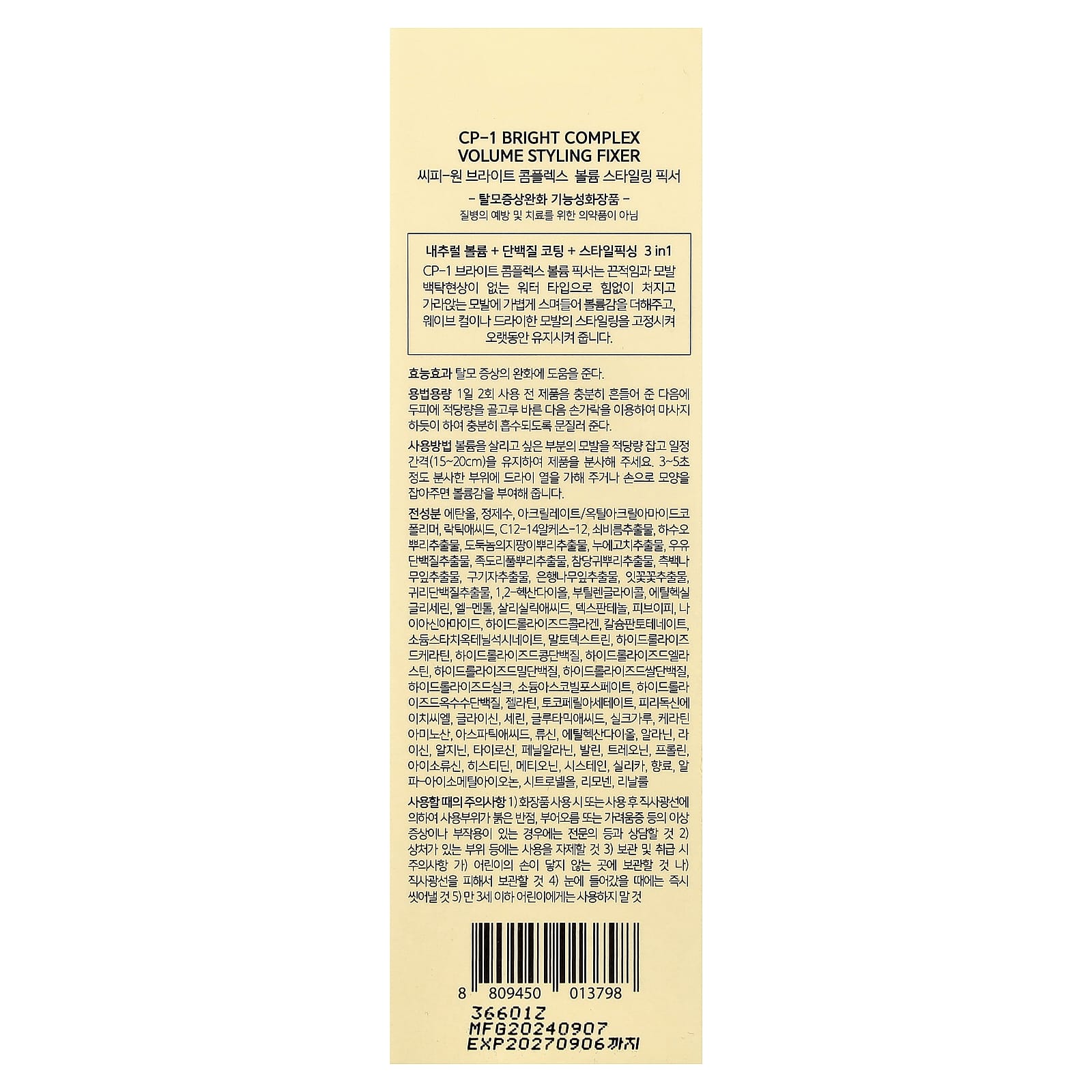 этанол, очищенная вода, акрилат/октилакриламид сополимеры, молочная кислота, c12-14 спирт-12, экстракт железных нити, экстракт корня клопогона, экстракт корня трутовика разноцветного, экстракт кокона тутового шелкопряда, экстракт молочного белка, экстракт корня стручков, экстракт корня чамканги, экстракт листьев кипариса, экстракт гугаджии, экстракт листьев гинкго билоба, экстракт белка овса, 1,2-гександиол, бутиленгликоль, этилгексилглицерин, эль-ментол, салициловой кислоты, декспантенол, гидролизованный рисовый белок, гидролизованный шелк, асковил фосфат натрия, гидролизованный кукурузный белок, желатина, токоферилацетат, пиридоксина гидрохлорид, глицин, серин, глутаминовая кислота, шёлковый порошок, аминокислота кератина, аспарагиновая кислота, лейцин, этилгександиол, аланин, лизин, аргинин, тирозин, фенилаланин, валин, треонин, пролин, изолейцин, гистидин, метионин, цистеин, диоксид кремния, отдушка, альфа-изометилионон, цитрон.