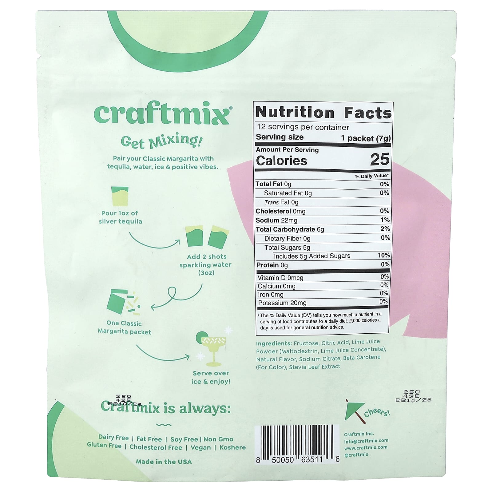 Craftmix, Пакетики для коктейлей, классическая маргарита, 12 пакетиков, 84 г (2,96 унции)