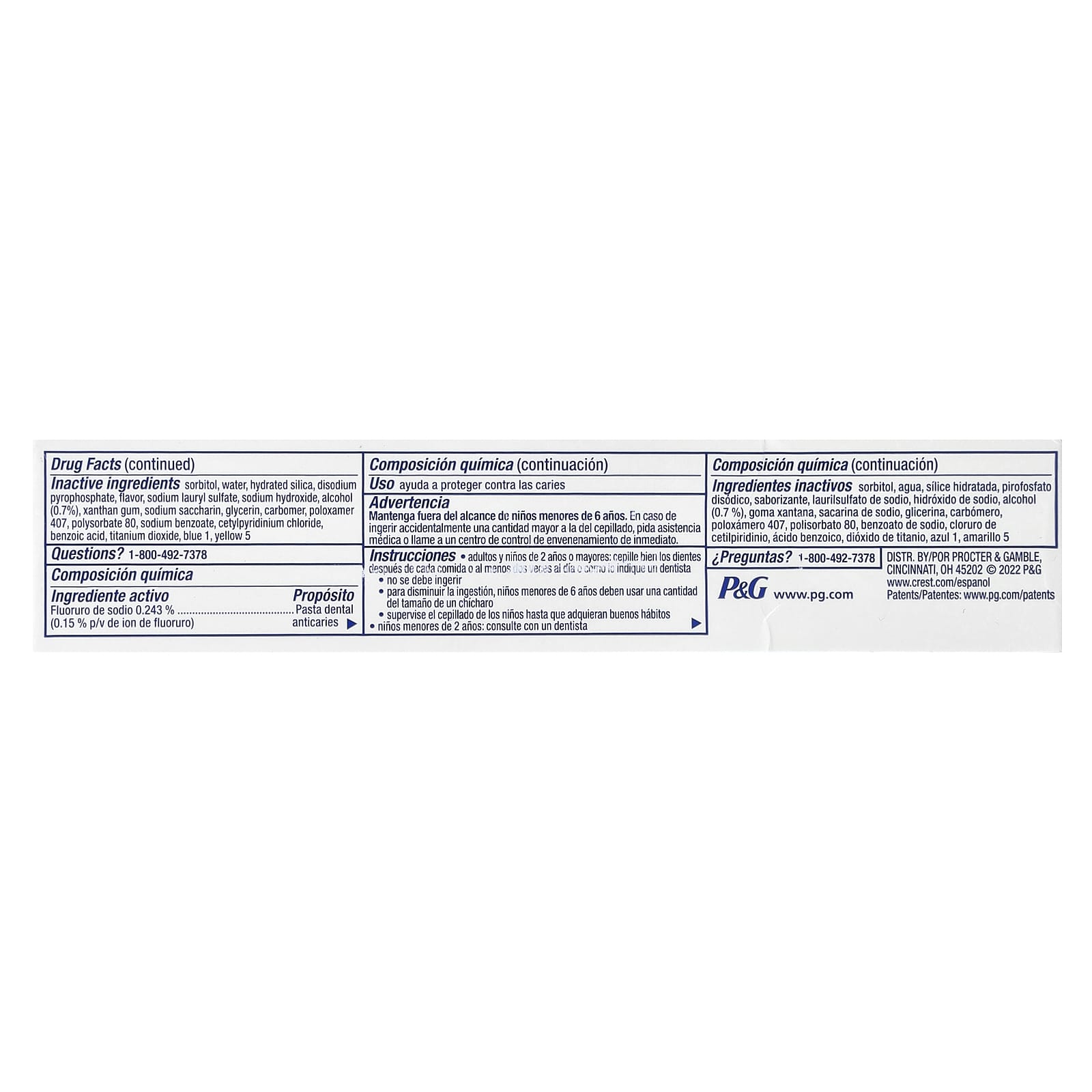 | Сорбитол, вода, гидратированный диоксид кремния, динатрий пирофосфат, ароматизатор, лаурилсульфат натрия, гидроксид натрия, спирт (0,7%), ксантановая камедь, сахарин натрия, глицерин, карбомер, полоксамер 407, полисорбат 80, бензоат натрия, цетилпиридиния хлорид, бензойная кислота, диоксид титана, синий 1, желтый 5. | |