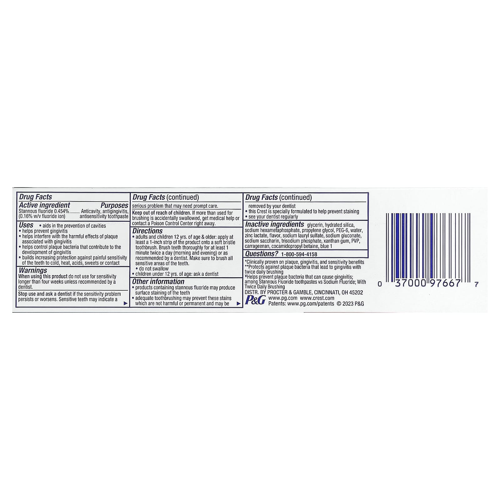 | Неактивные ингредиенты: Глицерин, гидратированный диоксид кремния, гексаметафосфат натрия, пропиленгликоль, ПЭГ-6, вода, лактат цинка, ароматизатор, лаурилсульфат натрия, глюконат натрия, сахарин натрия, тринатрийфосфат, ксантановая камедь, ПВП, каррагинан, синий 1. | |