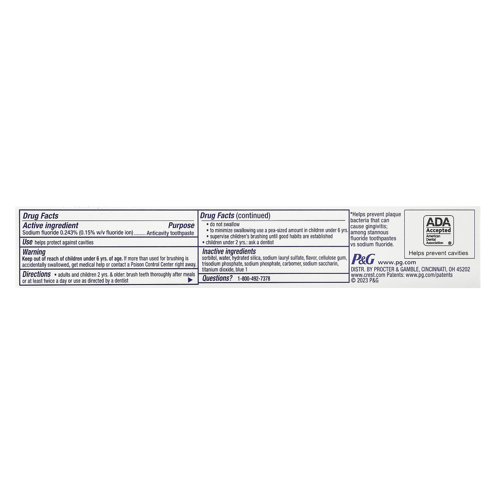 | Неактивные ингредиенты: Сорбитол, вода, гидратированный диоксид кремния, лаурилсульфат натрия, ароматизатор, целлюлозная камедь, тринатрийфосфат, фосфат натрия, карбомер, сахарин натрия, диоксид титана, синий 1. | |