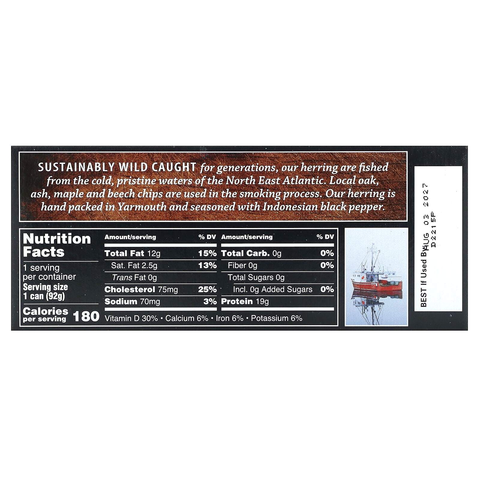 Наша сельдь, вылавливаемая в дикой природе на протяжении поколений, вылавливается в холодных нетронутых водах Северо-Восточной Атлантики. Для копчения используются щепки местного дуба, ясеня, клена и бука. Наша сельдь упаковывается вручную в Ярмуте и приправляется индонезийским черным перцем.