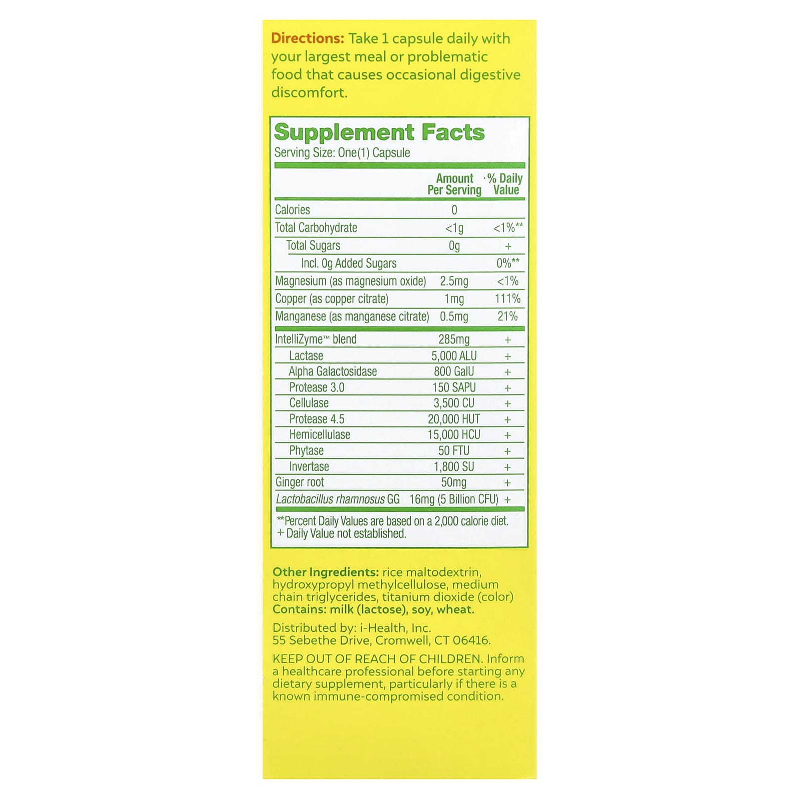 | Лактаза | 5000 ALU | + |