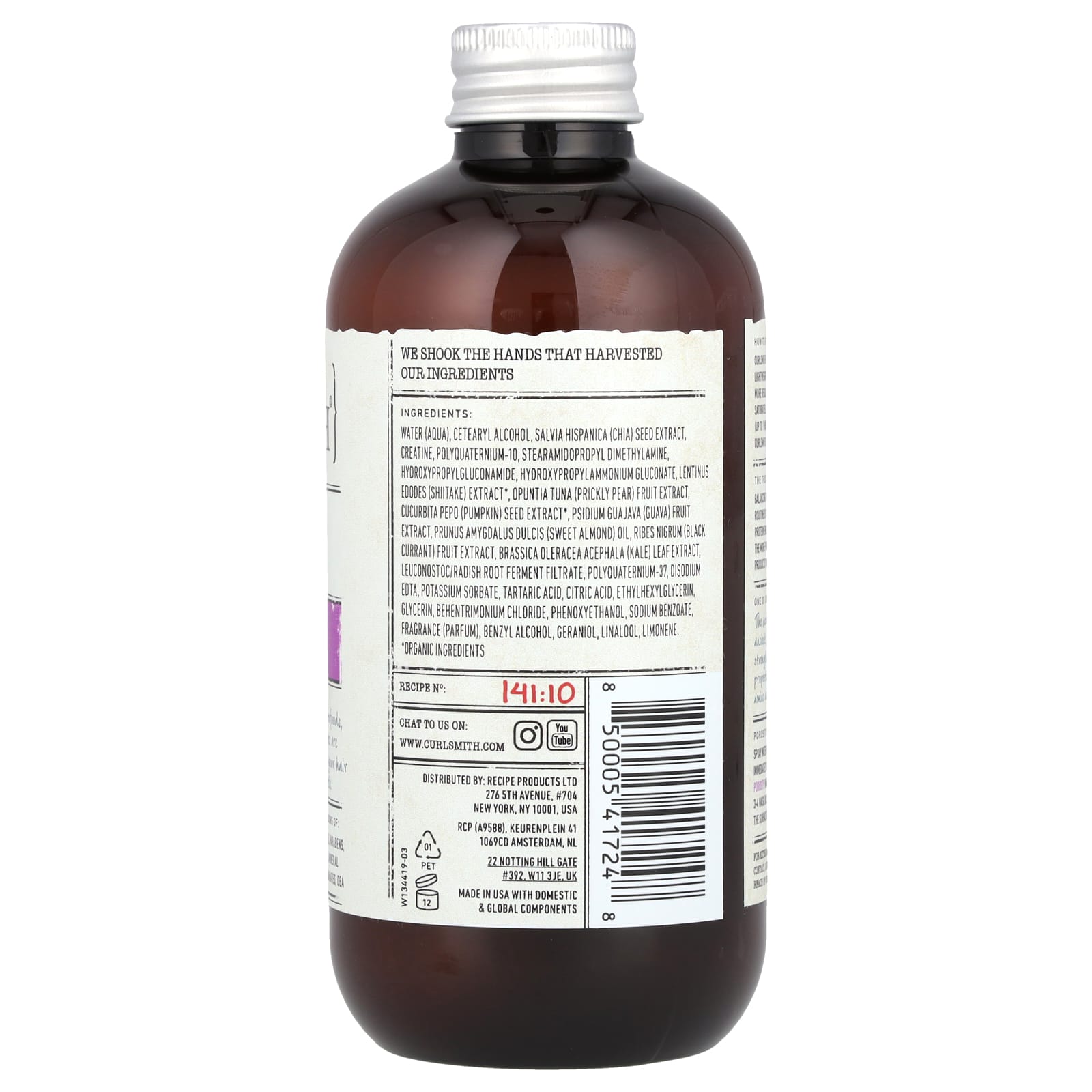 Вода, цетеариловый спирт, экстракт семян чиа (Salvia hispanica), креатин, поликватерниум-10, стеарамидопропил диметиламин, гидроксипропилглюконамид, гидроксипропиламмония глюконат, экстракт шиитаке (Lentinus edodes)*, экстракт плодов опунции (Opuntia tuna), экстракт семян тыквы (Cucurbita pepo)*, экстракт плодов гуавы (Psidium guajava), масло сладкого миндаля (Prunus amygdalus dulcis), экстракт ягод чёрной смородины (Ribes nigrum), экстракт листьев кудрявой капусты (Brassica oleracea acephala), лейконосток/ферментированный фильтрат корня редиса, поликватерниум-37, двунатриевая ЭДТК, сорбат калия, винная кислота, лимонная кислота, этилгексилглицерин, глицерин, бегентримония хлорид, феноксиэтанол, бензоат натрия, отдушка (парфюмерная композиция), бензиловый спирт, гераниол, линалоол, лимонен.