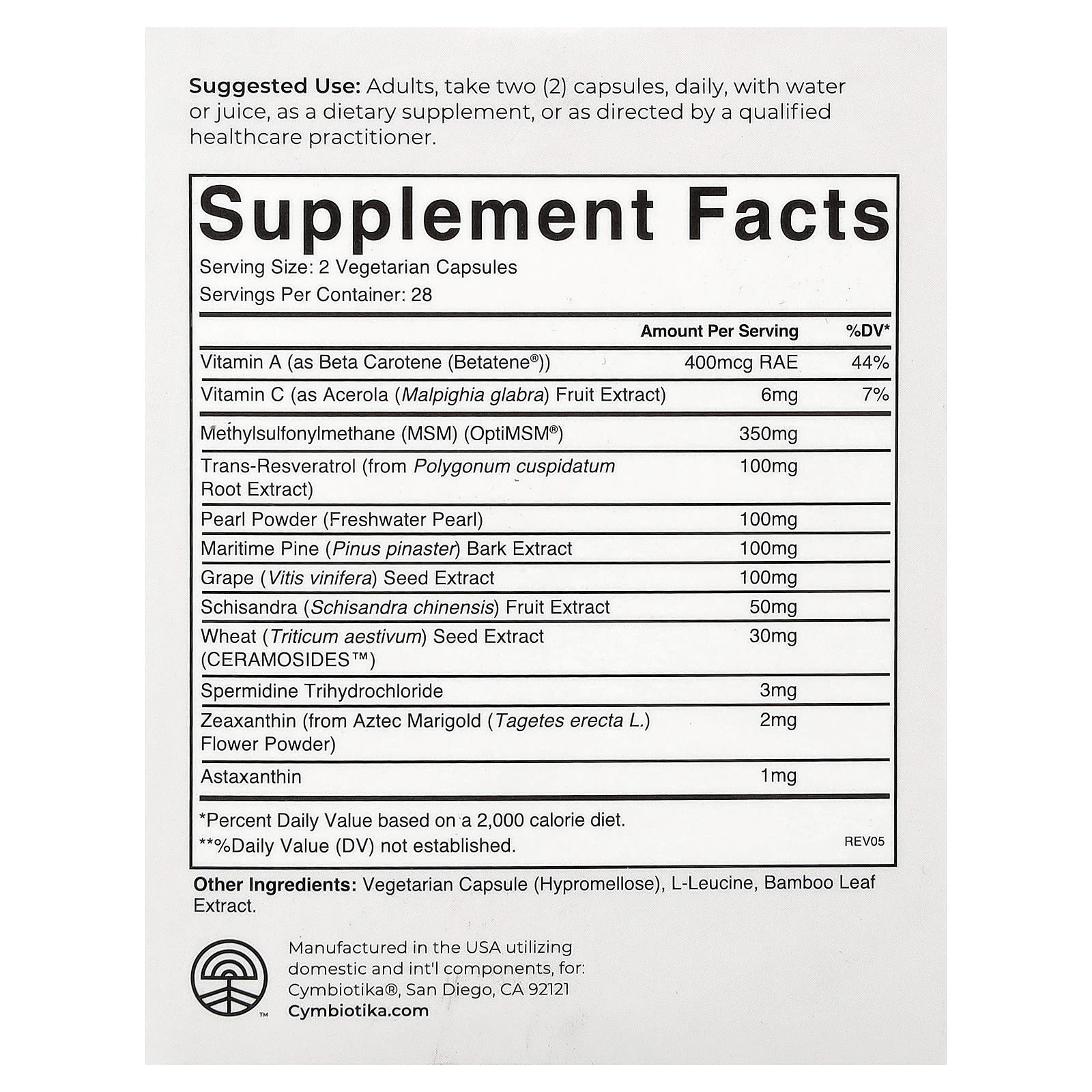 | Транс-ресвератрол (из экстракта корня рейнутрии японской [Polygonum cuspidatum]). | 100 мг | |