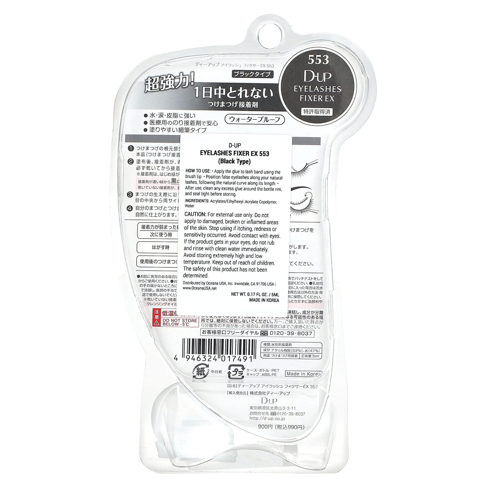 D-UP, средство для фиксации ресниц EX, 553 черный, 5 мл (0,17 жидк. унции)