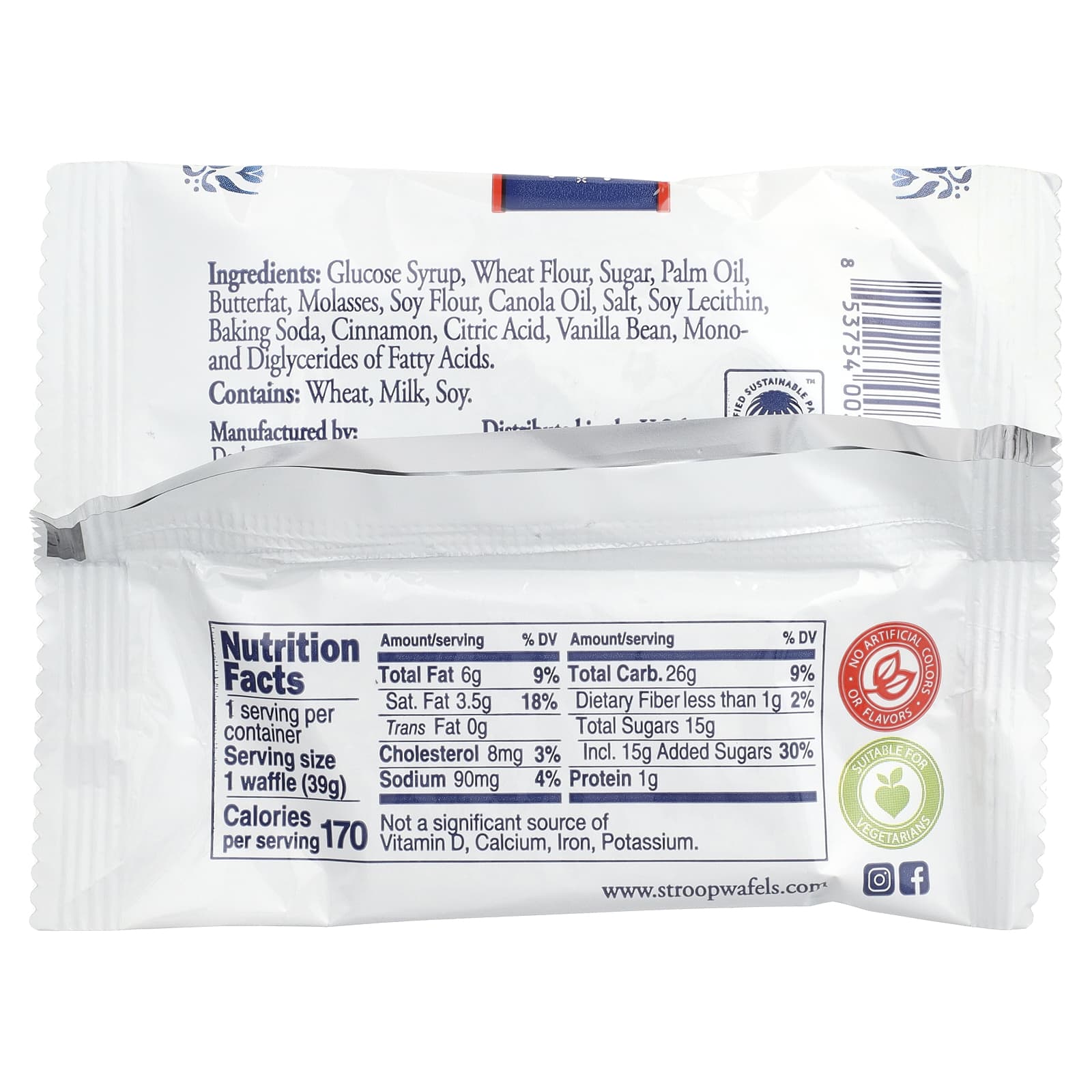 | Размер порции: 1 вафля (39 г) | ||