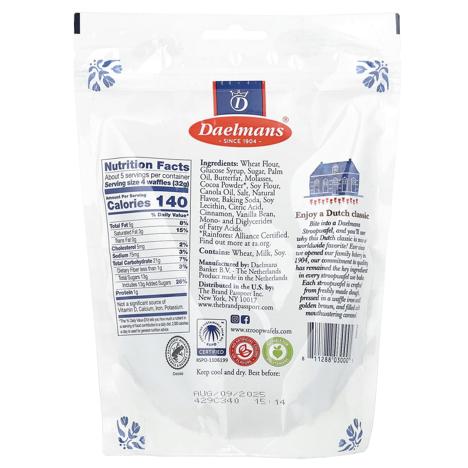 Попробуйте Daelmans Stroopwafel, и вы поймете, почему эта голландская классика стала фаворитом во всем мире! С момента открытия нашей семейной пекарни в 1904 году наша приверженность качеству остается ключевым ингредиентом каждой строопвафели, которую мы выпекаем. Каждая строопвафель изготавливается из свежеприготовленного теста, прессуется в вафельнице до золотистого цвета и наполняется аппетитной карамелью.