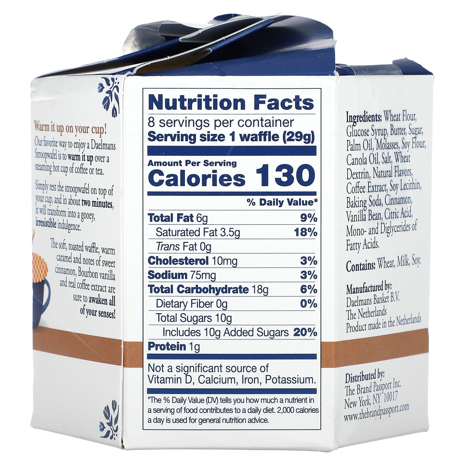 8 мягких поджаренных вафель с карамелью, корицей, бурбонской ванилью и экстрактом настоящего кофе.