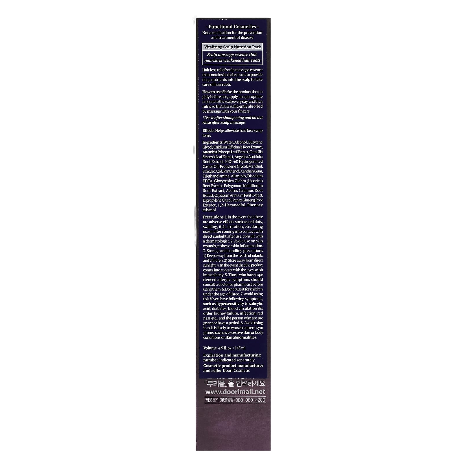 Массажная эссенция для облегчения выпадения волос, содержащая экстракты трав, которые глубоко проникают в кожу головы и заботятся о корнях волос.