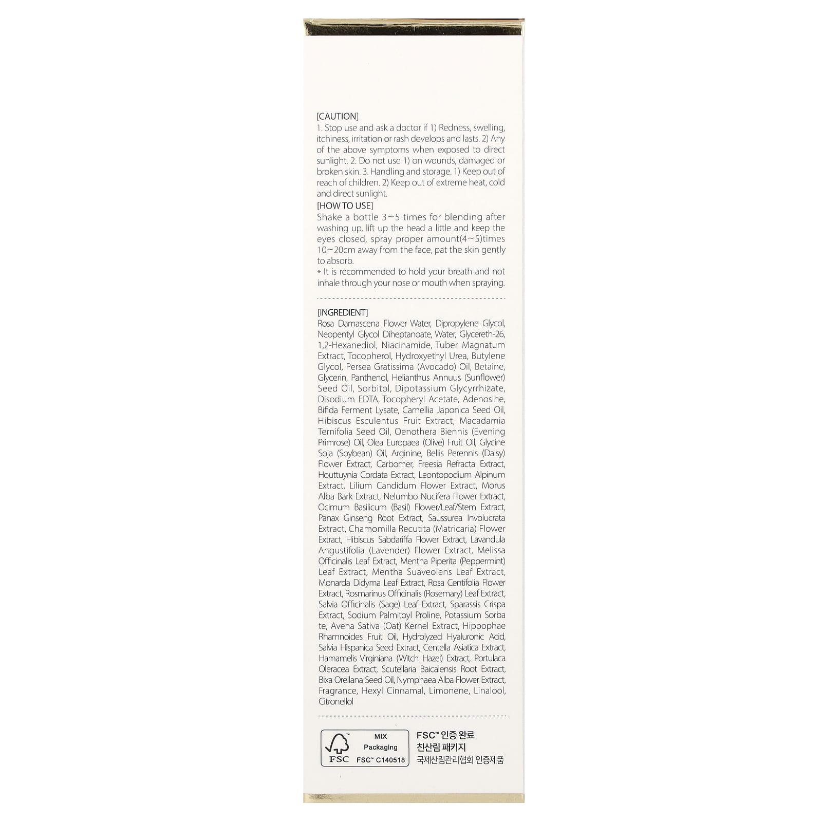 Вода из цветков дамасской розы (Rosa damascena), дипропиленгликоль, неопентилгликоль дигептаноат, вода, глицерет-26,1,2-гександиол, никотинамид, экстракт белого трюфеля (Tuber magnatum), токоферол, гидроксиэтилированная мочевина, бутиленгликоль, масло авокадо (Persea gratissima), бетаин, глицерин, пантенол, подсолнечное масло (Helianthus annuus), сорбитол, дикалия глицирризат, двунатриевая ЭДТК, токоферилацетат, аденозин, лизат ферментов бифидобактерий, масло из семян камелии японской (Camellia japonica), экстракт плодов гибискуса (Hibiscus esculentus), масло макадамии (Macadamia ternifolia), масло примулы вечерней (Oenothera biennis), оливковое масло (Olea europaea), соевое масло (Glycine soja), аргинин, экстракт цветков маргаритки многолетней (Bellis perennis), карбомер, экстракт фрезии (Feesia refracta), экстракт хауттюйнии (Houttuynia cordata), экстракт эдельвейса альпийского (Leontopodium alpinum), экстракт цветков белой лилии (Lilium candidum), экстракт коры шелковицы белой (Morus alba), экстракт цветков лотоса орехоносного (Nelumbo nucifera), экстракт цветков, листьев и стеблей базилика (Ocimum basilicum), экстракт корня женьшеня (Panax ginseng), экстракт соссюреи (Saussurea involucrata), экстракт цветков ромашки лекарственной (Chamomilla recutita), экстракт цветков розеллы (Hibiscus sabdariffa), экстракт цветков лаванды (Lavandula angustifolia), экстракт листьев мелиссы (Melissa officinalis), экстракт листьев перечной мяты (Mentha piperita), экстракт листьев мяты круглолистной (Mentha suaveolens), экстракт листьев монарды двойчатой (Monarda didyma), экстракт цветков розы столистной (Rosa centifolia), экстракт листьев розмарина (Rosmarinus officinalis), экстракт листьев шалфея (Salvia officinalis), экстракт спарассиса курчавого (Sparassis crispa), пальмитоил пролин натрия, сорбат калия, экстракт ядер овса (Avena sativa), масло из плодов облепихи крушиновидной (Hippophae rhamnoides), гидролизованная гиалуроновая кислота, экстракт семян чиа (Salvia hispanica), экстракт готу колы (Centella asiatica), экстракт гамамелиса (Hamamelis virginiana), экстракт портулака огородного (Portulaca oleracea), экстракт корня шлемника (Scutellaria baicalensis), масло из семян аннато (Bixa orellana), экстракт цветков кувшинки белой (Nymphaea alba), отдушка, гексил циннамал, лимонен, линалоол, цитронеллол.