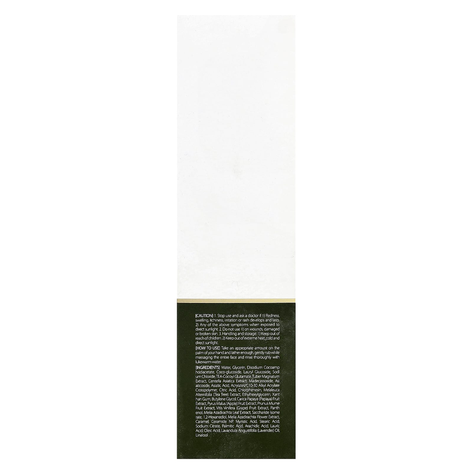 Вода, глицерин, кокоамфодиацетат динатрия, кокоглюкозид, лаурил глюкозид, хлорид натрия, ТЭА-кокоил глутамат, экстракт белого трюфеля (Tuber magnatum), экстракт готу колы (Centella asiatica), мадекассосид, азиатикозид, азиатиковая кислота, акрилат/c10-30 алкил акрилат кроссполимер, лимонная кислота, хлорфенезин, экстракт чайного дерева (Melaleuca alternifolia), этилгексилглицерин, ксантановая камедь, бутиленгликоль, экстракт плодов папайи (Carica papaya), экстракт яблока (Pyrus malus), экстракт плодов абрикоса (Prunus mume), экстракт плодов винограда (Vitis vinifera), пантенол, экстракт листьев дерева ним (Melia azadirachta), инвертный сахар, 1,2-гександиол, экстракт цветков дерева ним (Melia azadirachta), карамель, керамид NP, миристиновая кислота, стеариновая кислота, цитрат натрия, пальмитиновая кислота, арахиновая кислота, лауриновая кислота, олеиновая кислота, лавандовое масло (Lavandula angustifolia), линалоол.