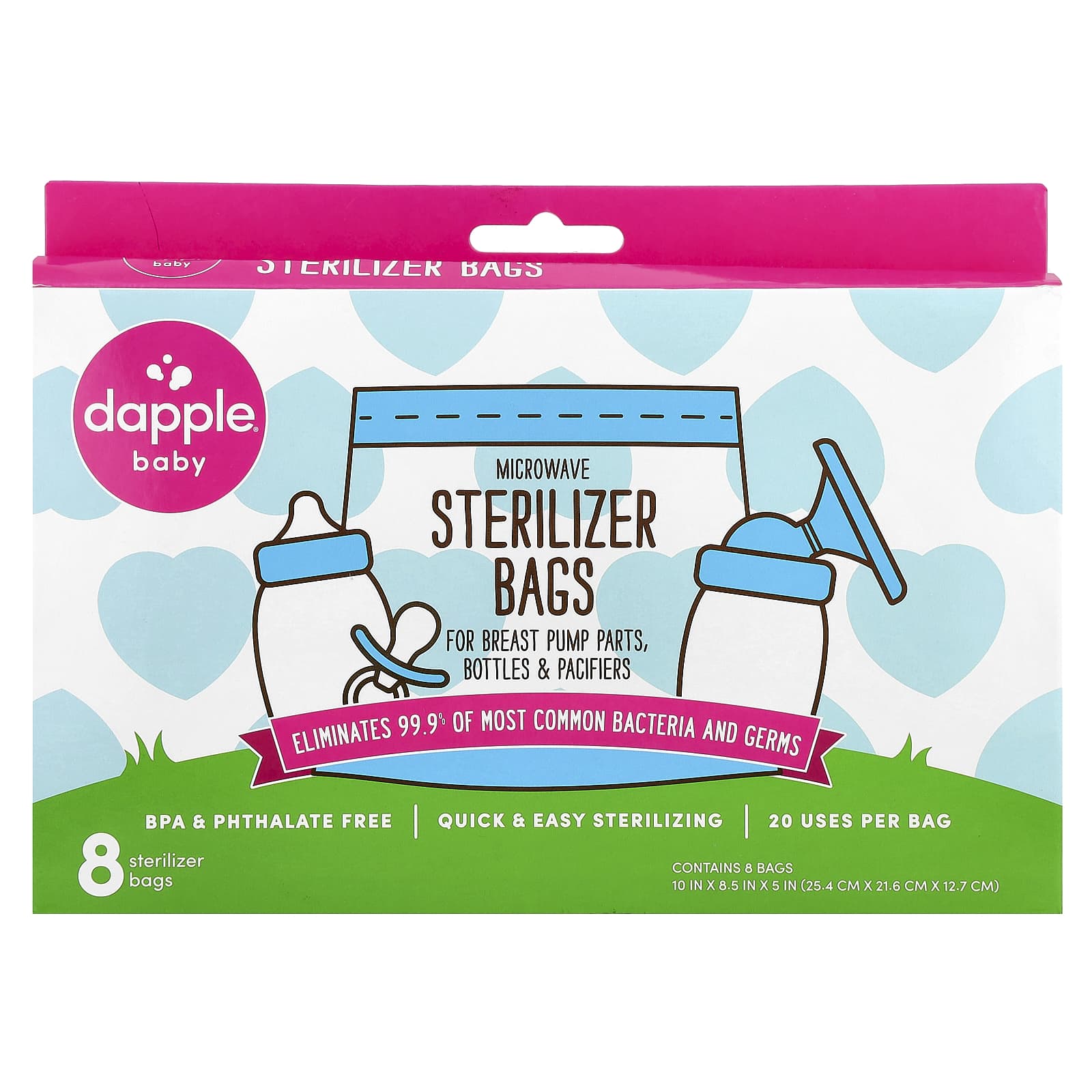 Наши пакеты для стерилизации в микроволновой печи удаляют 99% наиболее распространенных бактерий и микробов на деталях молокоотсоса, бутылках и многом другом. Их можно использовать дома или в дороге - достаточно воды и микроволновой печи.