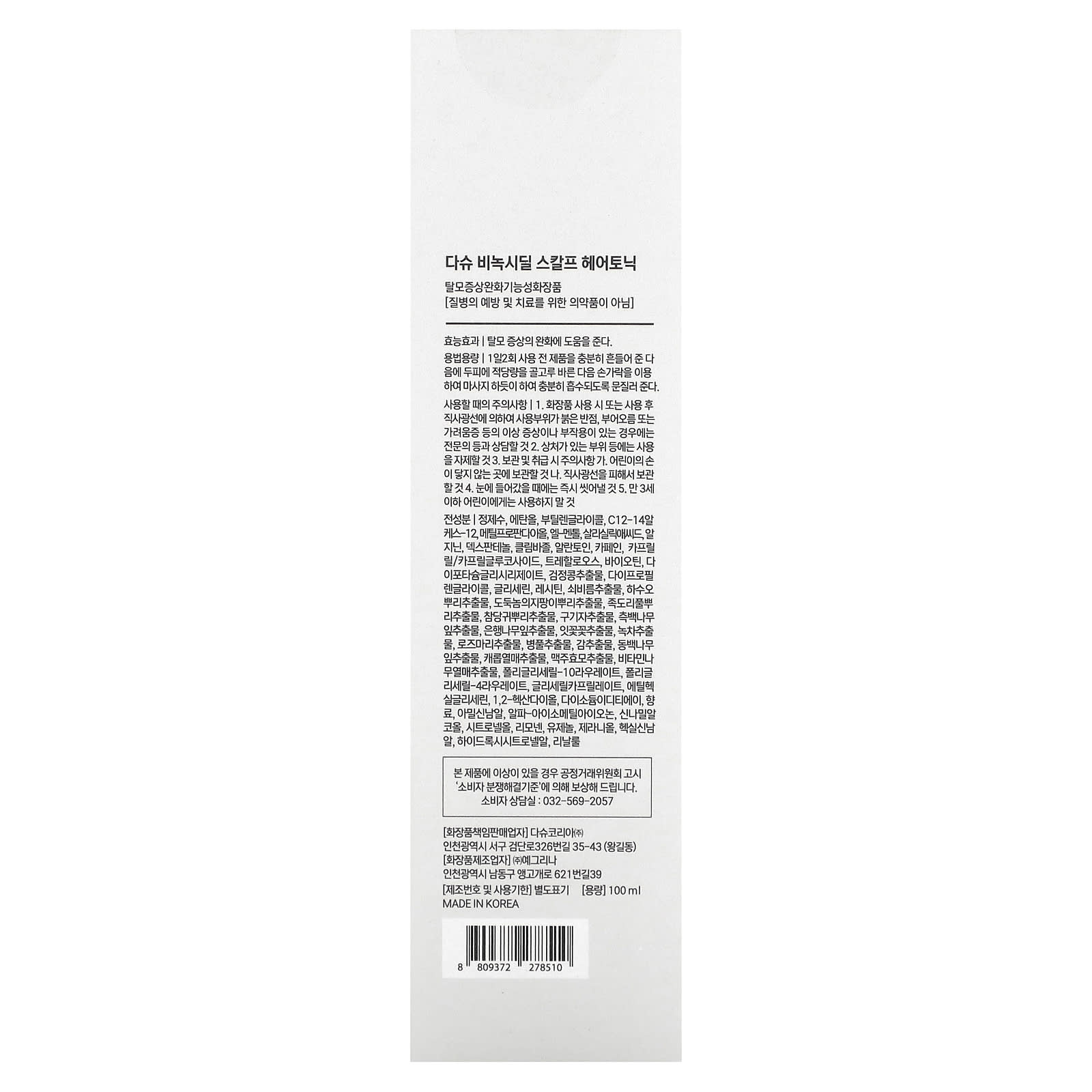 Очищенная вода, этанол, бутиленгликоль, C12-14 парет-12, метилпропандиол, ментол, салициловой кислоты, аргинин, декспантенол, климбазол, аллантоин, кофеин, каприлил / каприлглюкозид, Трехальская роза, биотин, дикалия глицирризат, экстракт черной фасоли, дипропиленгликоль, глицерин, лецитин, экстракт портулака, экстракт корня корневища сточных вод, экстракт корня тростника воровского, экстракт корня полыни, экстракт корня дудника гигантского (Angelica gigas), экстракт лайчи, экстракт листьев туи, экстракт листьев гинкго, экстракт сафлора, экстракта зеленого чая, экстракт розмарина, экстракт готу колы (Centella asiatica), скрытый экстракт, экстракт листьев камелии, экстракт плодов рожкового дерева, экстракт пивных дрожжей, экстракт плодов витаминного дерева, полиглицерил-10, полиглицерил-4 лаурат, глицерил каприлат, этилгексилглицерин, 1,2-гександиол, двунатриевая ЭДТК, отдушка, амилциннамал, альфа-изометилионон, коричный спирт, цитронеллол, лимонен, эвгенол, гераниол, гексил циннамал, гидроксицитронеллаль, линалоол.