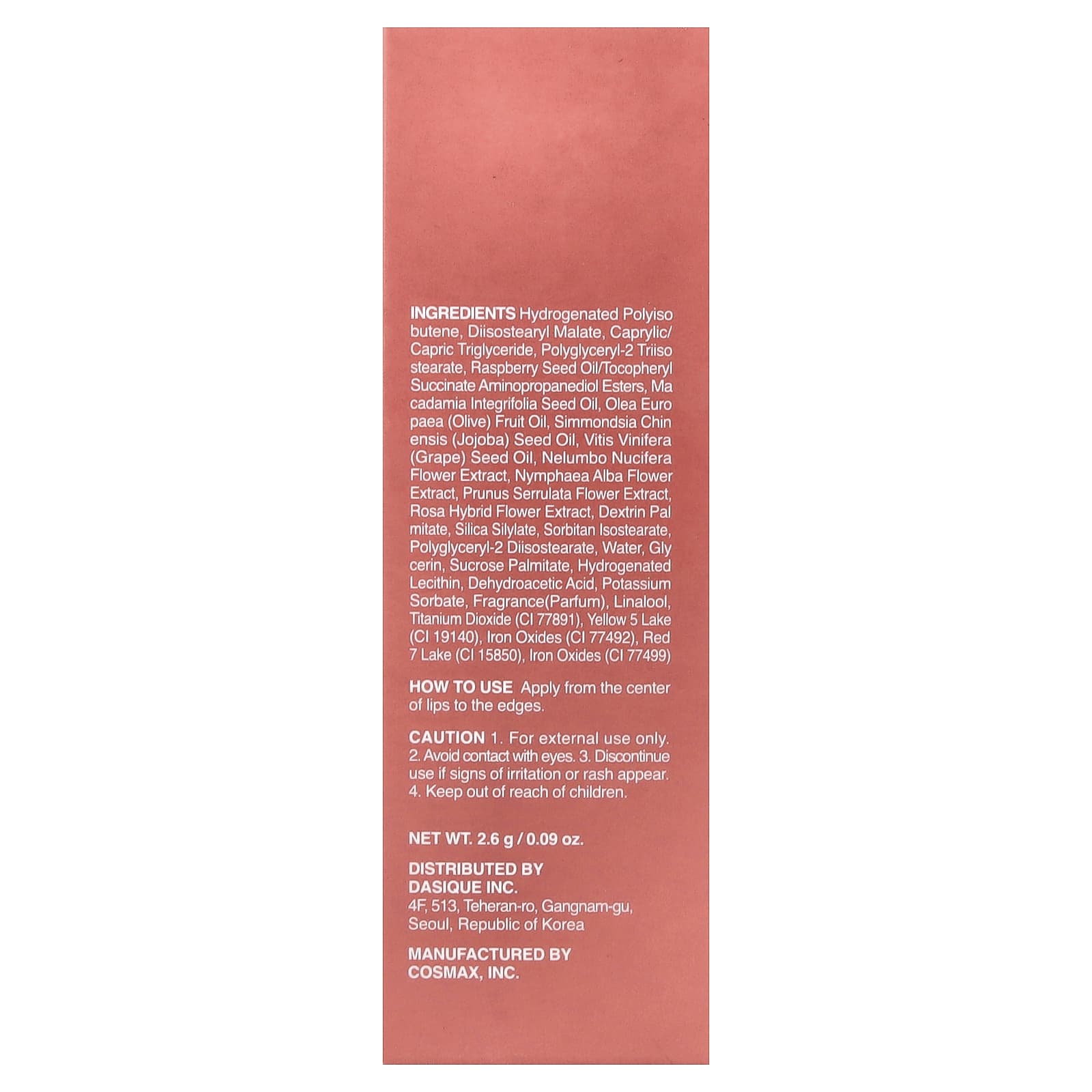 Гидрогенизированный полиизобутен, диизостеарил малат, каприловый/каприновый триглицерид, полиглицерил-2 триизостеарат, малиновое масло/токоферил сукцинат аминопропандиола, масло макадамии (Macadamia integrifolia), оливковое масло (Olea europaea), масло семян жожоба (Simmondsia chinensis), масло из виноградных косточек (Vitis vinifera), экстракт цветков лотоса орехоносного (Nelumbo nucifera), экстракт цветков кувшинки белой (Nymphaea alba), экстракт цветков вишни мелкопильчатой (Prunus serrulata), экстракт цветков розы (Rosa hybrida), декстрин пальмитат, силилат диоксида кремния, сорбитан изостеарат, полиглицерил-2 диизостеарат, вода, глицерин, пальмитат сахарозы, гидрогенизированный лецитин, дегидроуксусная кислота, сорбат калия, отдушка (парфюмерная композиция), линалоол, диоксид титана (CI 77891), краситель жёлтый 5 лак (CI 19140), оксиды железа (CI 77492), краситель красный 7 лак (CI 15850), оксиды железа (CI 77499).