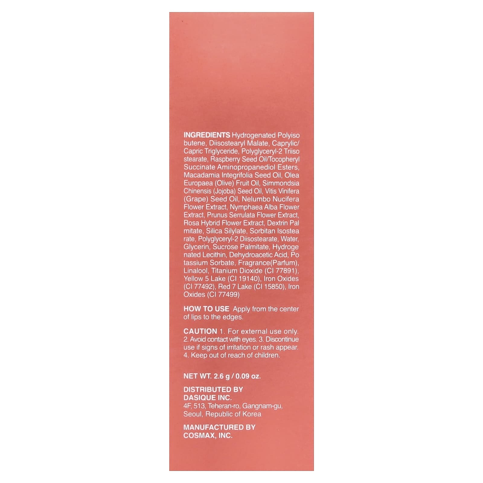 Гидрогенизированный полиизобутен, диизостеарил малат, каприловый/каприновый триглицерид, полиглицерил-2 триизостеарат, малиновое масло/токоферил сукцинат аминопропандиола, масло макадамии (Macadamia integrifolia), оливковое масло (Olea europaea), масло семян жожоба (Simmondsia chinensis), масло из виноградных косточек (Vitis vinifera), экстракт цветков лотоса орехоносного (Nelumbo nucifera), экстракт цветков кувшинки белой (Nymphaea alba), экстракт цветков вишни мелкопильчатой (Prunus serrulata), экстракт цветков розы (Rosa hybrida), декстрин пальмитат, силилат диоксида кремния, сорбитан изостеарат, полиглицерил-2 диизостеарат, вода, глицерин, пальмитат сахарозы, гидрогенизированный лецитин, дегидроуксусная кислота, сорбат калия, отдушка (парфюмерная композиция), линалоол, диоксид титана (CI 77891), краситель жёлтый 5 лак (CI 19140), оксиды железа (CI 77492), краситель красный 7 лак (CI 15850), оксиды железа (CI 77499).