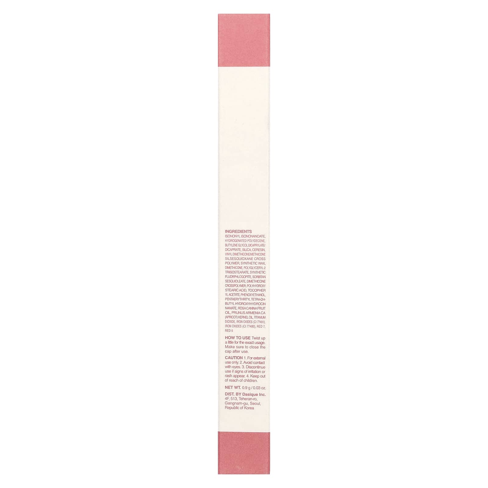 Isononyl isononanoate, гидрогенизированный полидецен, бутиленгликоль дикаприлат / дикапрат, диоксид кремния, церезин, винилдиметикон / метикон силсесквиоксан, кросс-полимер, синтетический воск, диметикон, полиглицерил-2 триизостеарат, синтетический фторфлогопит, сорбитан сесквиолеат, диметикон кроссполимер, полигидроксистеариновая кислота, токоферилацетат, феноксиэтанол, пентаэритритил тетра-dh-бутил гидроксигидроциннамат, масло плодов роза (Rosa canina), масло из косточек абрикоса (Prunus armeniaca), диоксид титана, оксиды железа (CI 77491), оксиды железа (CI 77492), красный 7, красный 6.
