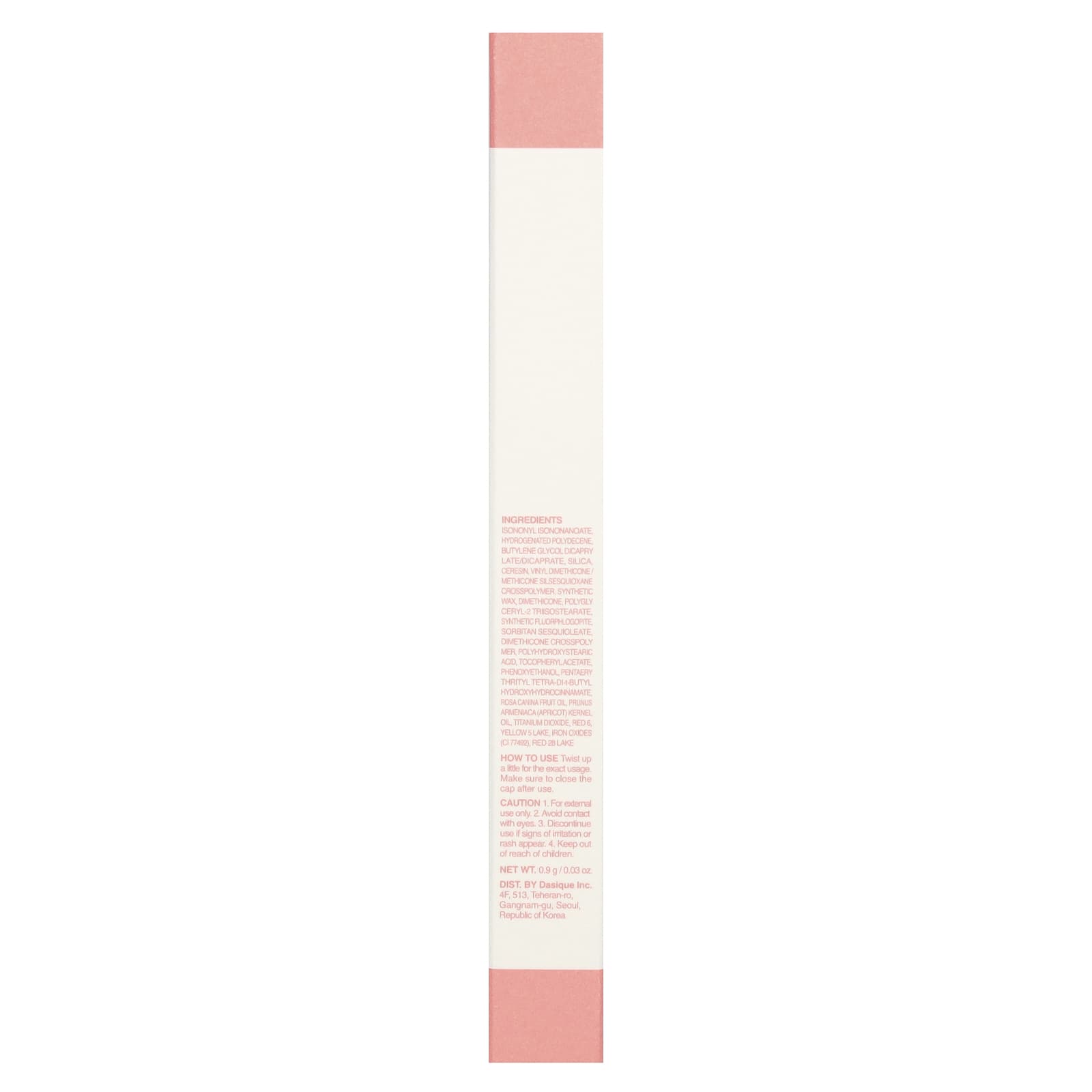 Isononyl isononanoate, гидрогенизированный полидецен, бутиленгликоль дикаприлат / дикапрат, диоксид кремния, церезин, винилдиметикон / метикон силсесквиоксан кроссполимер, синтетический воск, диметикон, полиглицерил-2 триизостеарат, синтетический фторфлогопит, сорбитан сесквиолеат, диметикон кроссполимер, полигидроксистеариновая кислота, токоферилацетат, феноксиэтанол, пентаэритритил тетра-дибутил гидроксигидроциннамат, масло плодов роза (Rosa canina), масло из косточек абрикоса (Prunus armeniaca), диоксид титана, красный 6, желтый 5 Lake, оксиды железа (CI 77492), красное 28 лак.