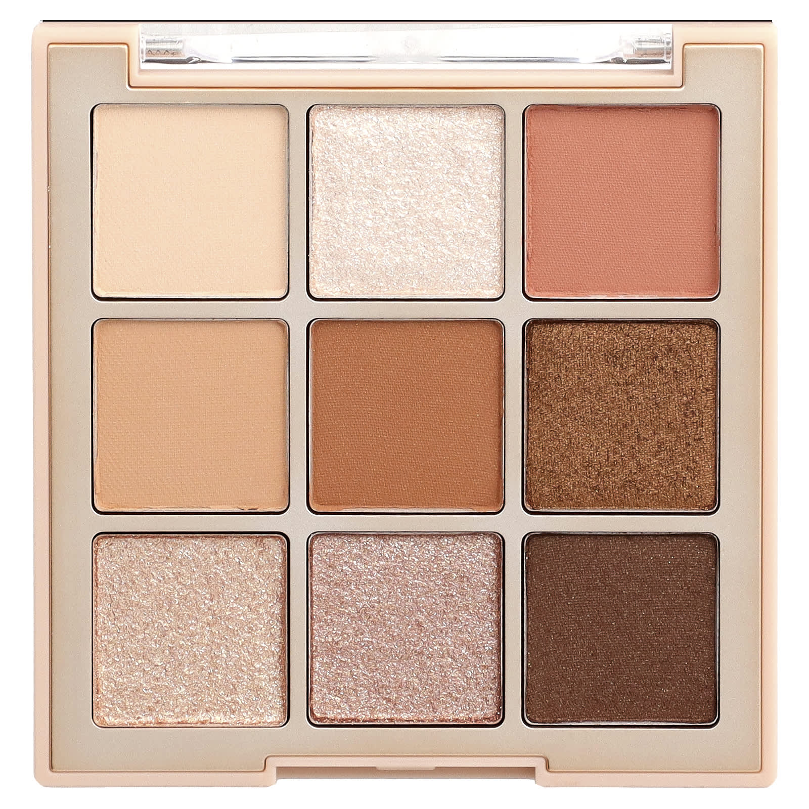 Палитра теней для век, состоящая из насыщенных и теплых оттенков брауни.
