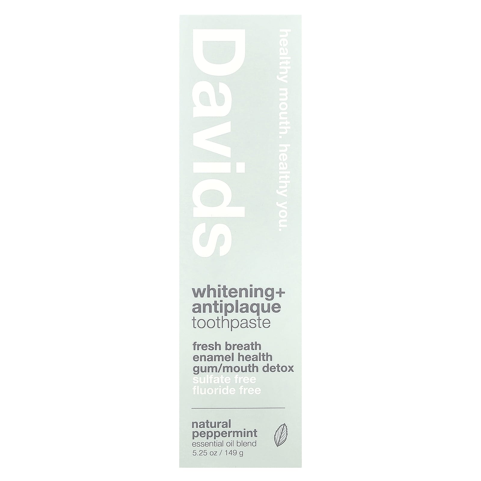 Davids, Отбеливающая зубная паста против зубного налета, натуральная перечная мята, 149 г (5,25 унции)