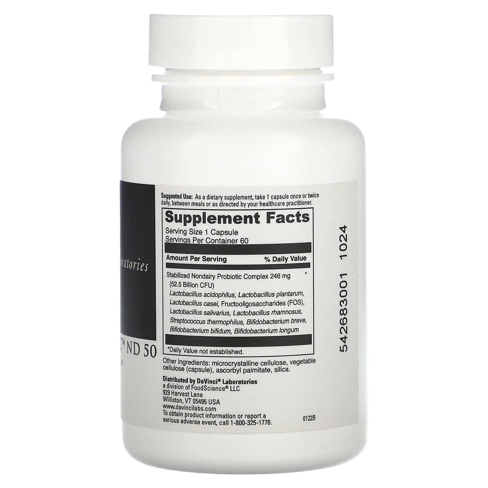 Mega Probiotic ™ ND 50 содержит 9 видов микроорганизмов из немолочных источников, обеспечивая полный спектр штаммов пробиотиков. Мы добавили фруктоолигосахариды (ФОС), растворимую клетчатку и пребиотики, которые выборочно стимулируют распространение здоровых кишечных пробиотиков. Такое сочетание ингредиентов поддерживает здоровье пищеварительного тракта.