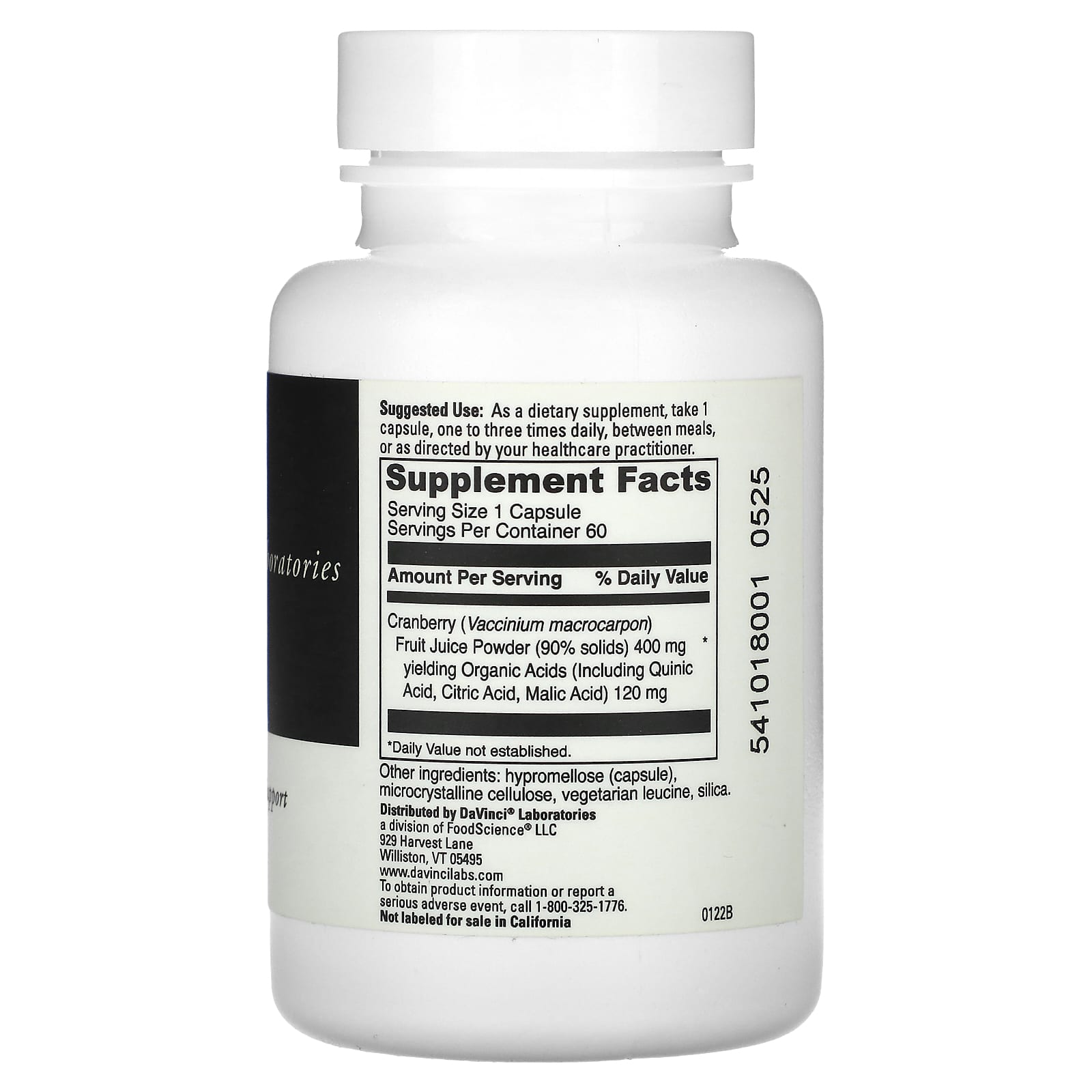 | Клюква (Vaccinium macrocarpon) Порошок фруктового сока (90% сухого вещества), содержащий органические кислоты (включая хинную кислоту). Кислоты, лимонной кислоты, яблочной кислоты) 120 мг | 400 мг | * |