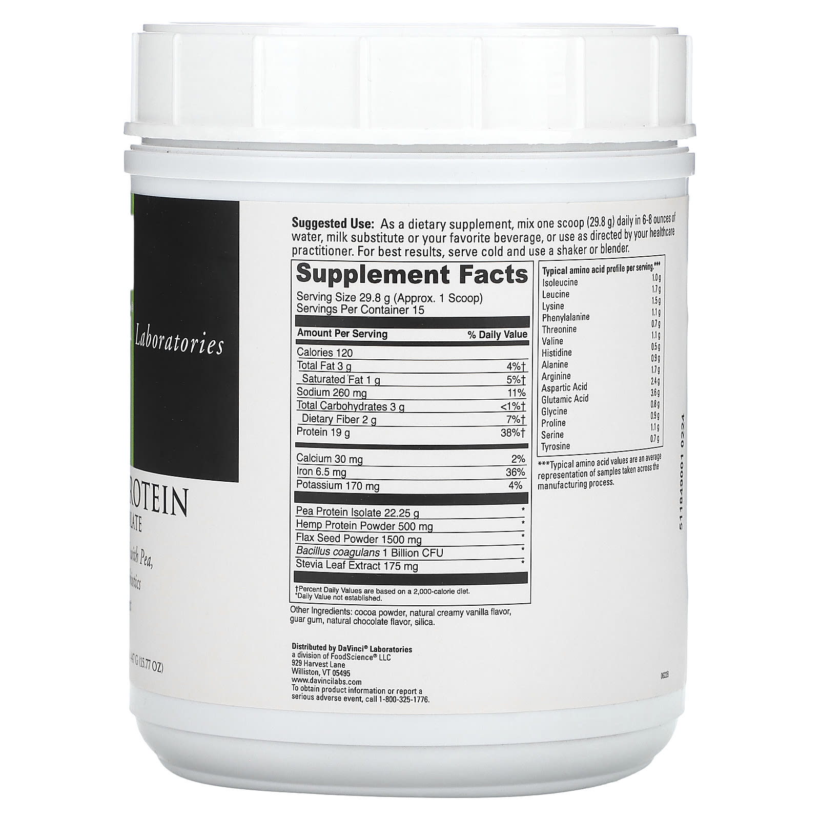 Веганский протеин «Сливочный шоколад» содержит 19 г протеина из гороха, семян льна и конопли. Каждая порция также содержит 1 миллиард КОЕ Bacillus coagulans.