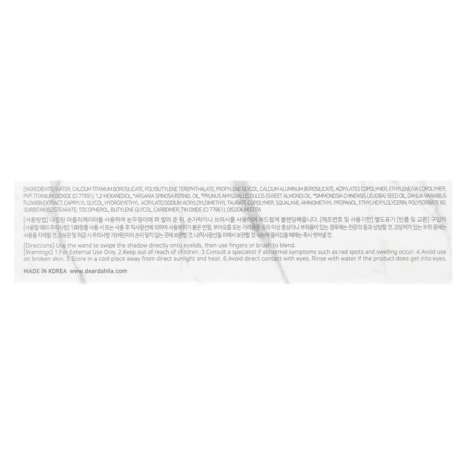Вода, боросиликат кальция и титана, полибутилентерефталат, пропиленгликоль, кальций алюминий боросиликат, сополимер акрилатов, этилен / ва-сополимер, ПВП, диоксид титана (CI 77891), 1,2-гександиол, масло из косточек аргании (Argania spinosa), масло сладкого миндаля (Prunus amygdalus dulcis), масло семян жожоба (Simmondsia chinensis)*, экстракт цветков георгина (Dahlia variabilis), каприлилгликоль, гидроксиэтил акрилат/натрия акрилоилдиметилтаурата сополимер, сквалан, аминометил пропанол, этилгексилглицерин, полисорбат 60, сорбитан изостеарат, токоферол, бутиленгликоль, карбомер, оксид олова (CI 77861), двунатриевая ЭДТК.
