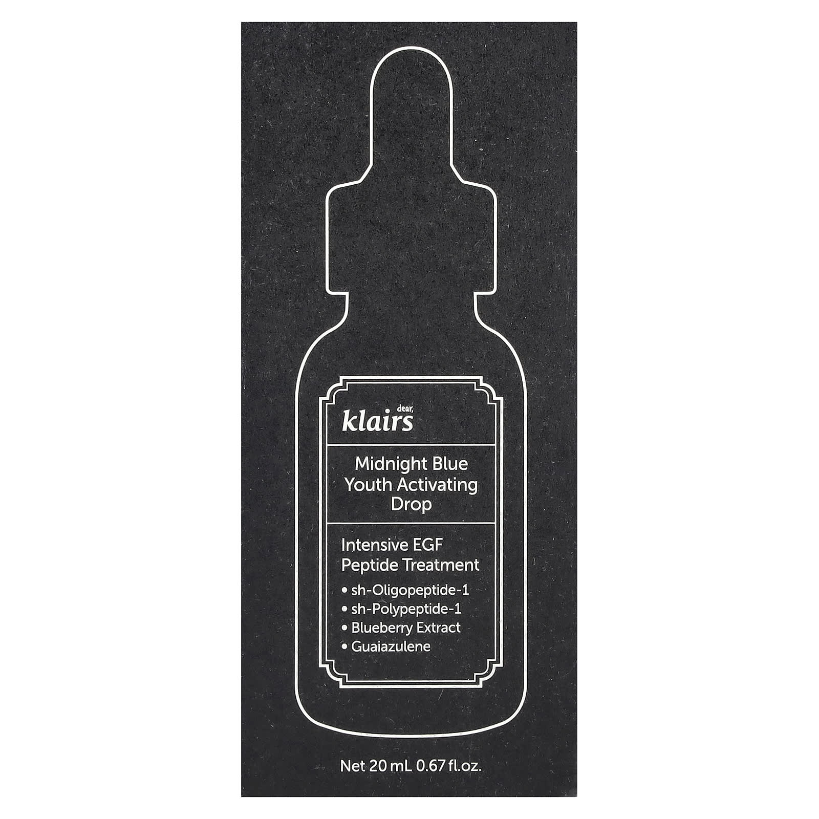 Высококонцентрированная антивозрастная сыворотка Midnight Blue Youth Activating Drop придаёт коже сияние, значительно улучшает цвет лица и стимулирует выработку коллагена в коже. Она также ускоряет процесс обновления кожи, улучшая текстуру и эластичность кожи, уменьшая пигментацию, такую как пигментные пятна, и делая мелкие и глубокие морщины менее заметными.