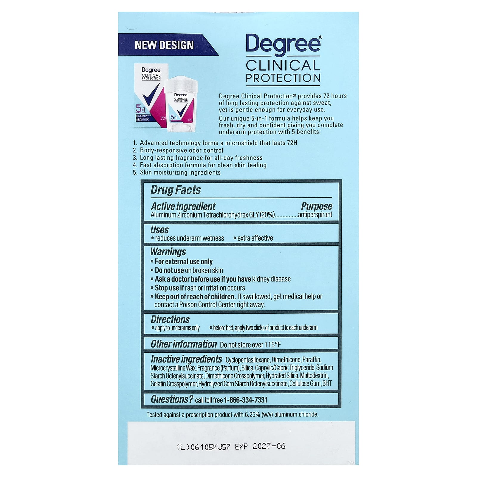 - Ночное применение дает оптимальные результаты, поскольку Degree Clinical Protection может обеспечить глубокий уровень защиты, когда ваше тело находится в состоянии покоя.