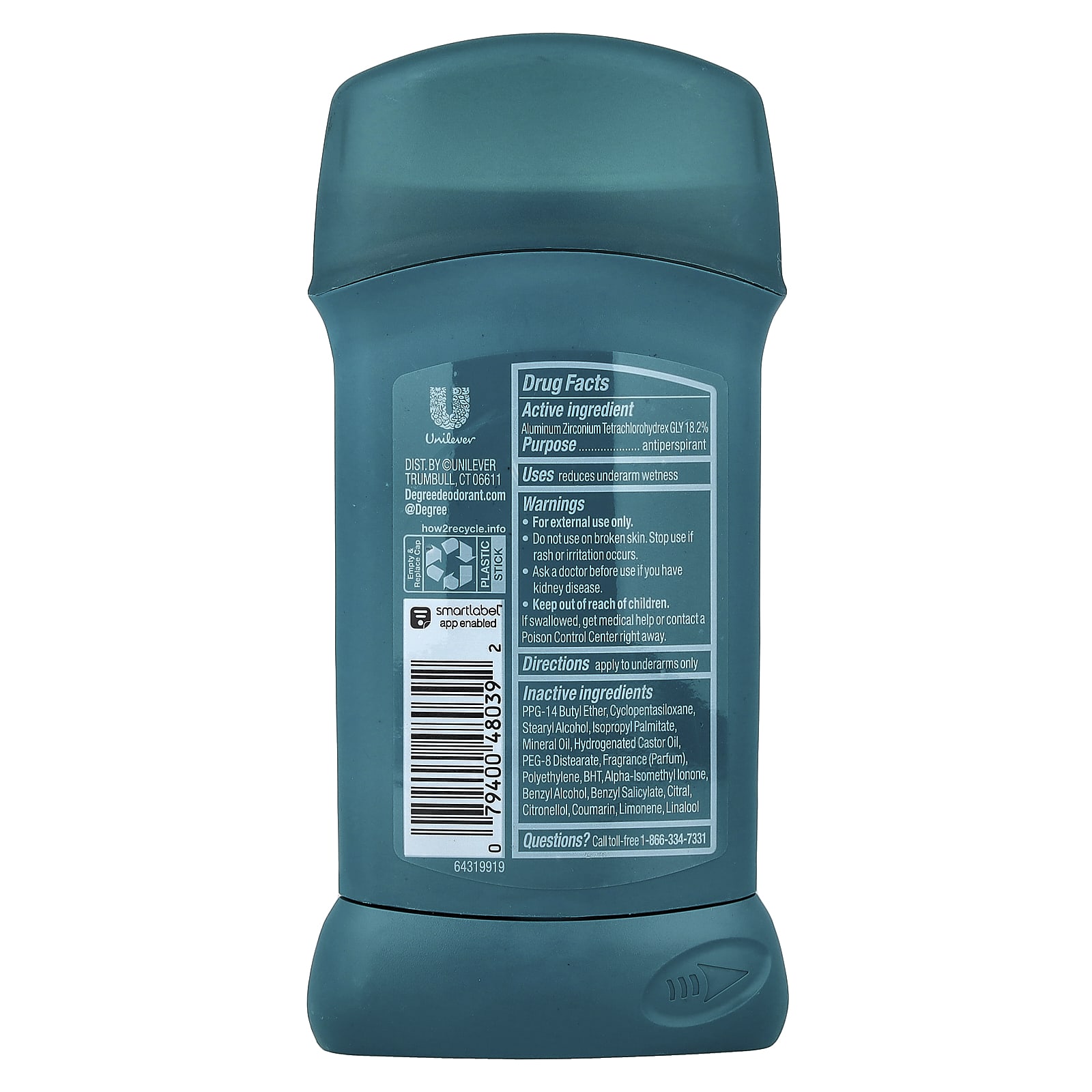 ППГ-14 бутиловый эфир, циклопентасилоксан, стеариловый спирт, изопропилпальмитат, минеральное масло, гидрогенизированное касторовое масло, ПЭГ-8 дистеарат, отдушка (отдушка), полиэтилен, БГТ, альфа-изометиллонон, бензиловый спирт, бензилсалицилат, цитраль, цитронеллол, кумарин, лимонен, линалоол.