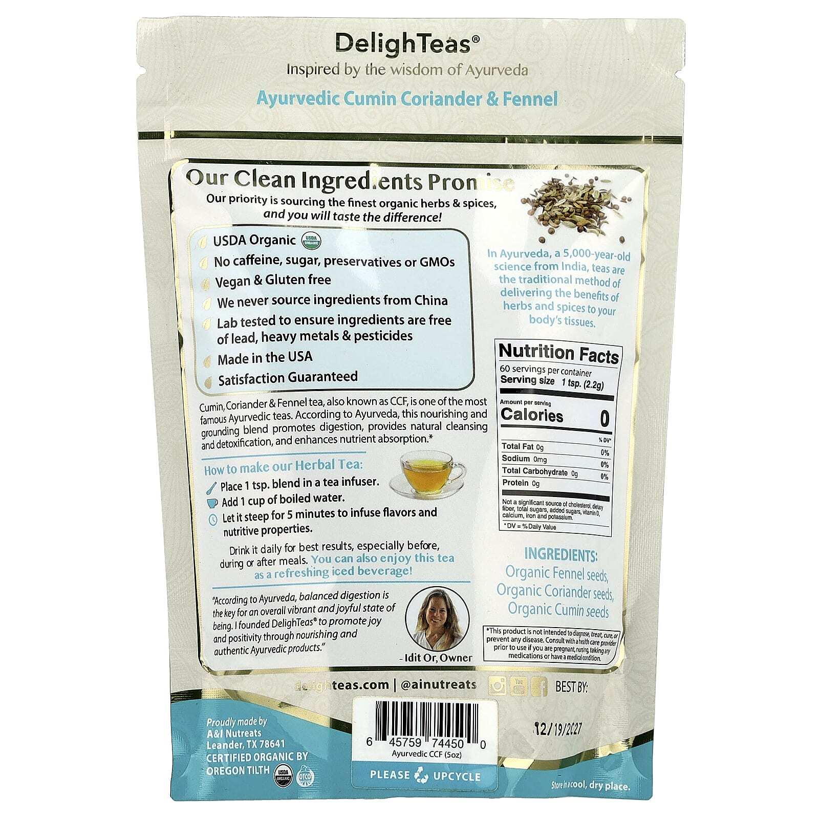 Чай с тмином, кориандром и фенхелем, также известный как CCF, является одним из самых известных аюрведических чаев. Согласно утверждениям аюрведы, эта питательная и заземляющая смесь способствует пищеварению, обеспечивает естественное очищение и детоксикацию, а также улучшает усвоение питательных веществ.