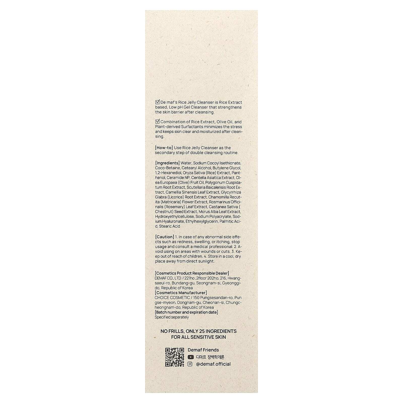 Очищающее средство с рисовым желе от De:maf — это очищающий гель с низким уровнем pH на основе экстракта риса, который укрепляет кожный барьер после очищения.