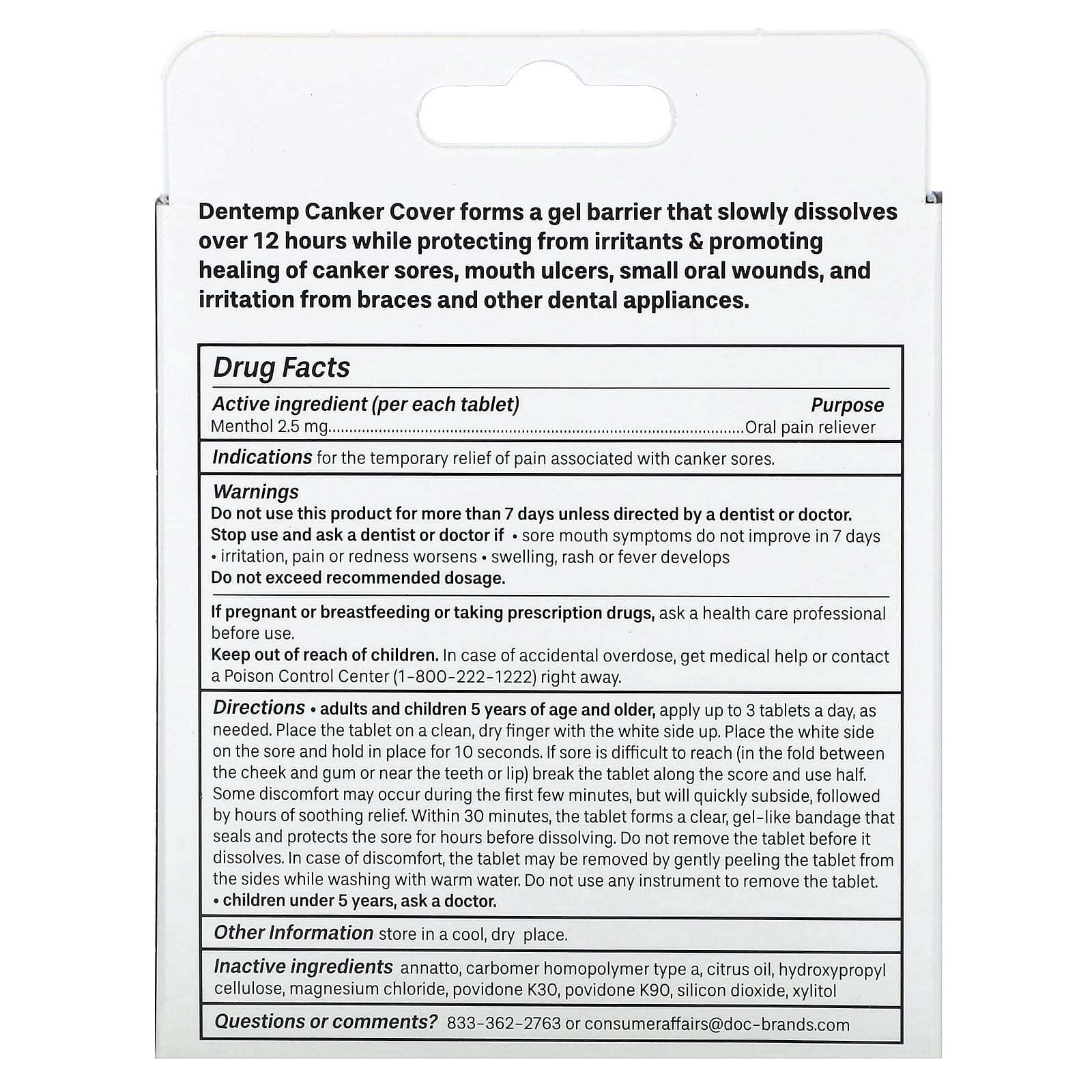 Dentemp Canker Cover образует гелевый барьер, который медленно растворяется в течение 12 часов, защищая от раздражителей и способствуя заживлению язвочек, язв во рту, небольших ран во рту и раздражения от брекетов и других стоматологических инструментов.