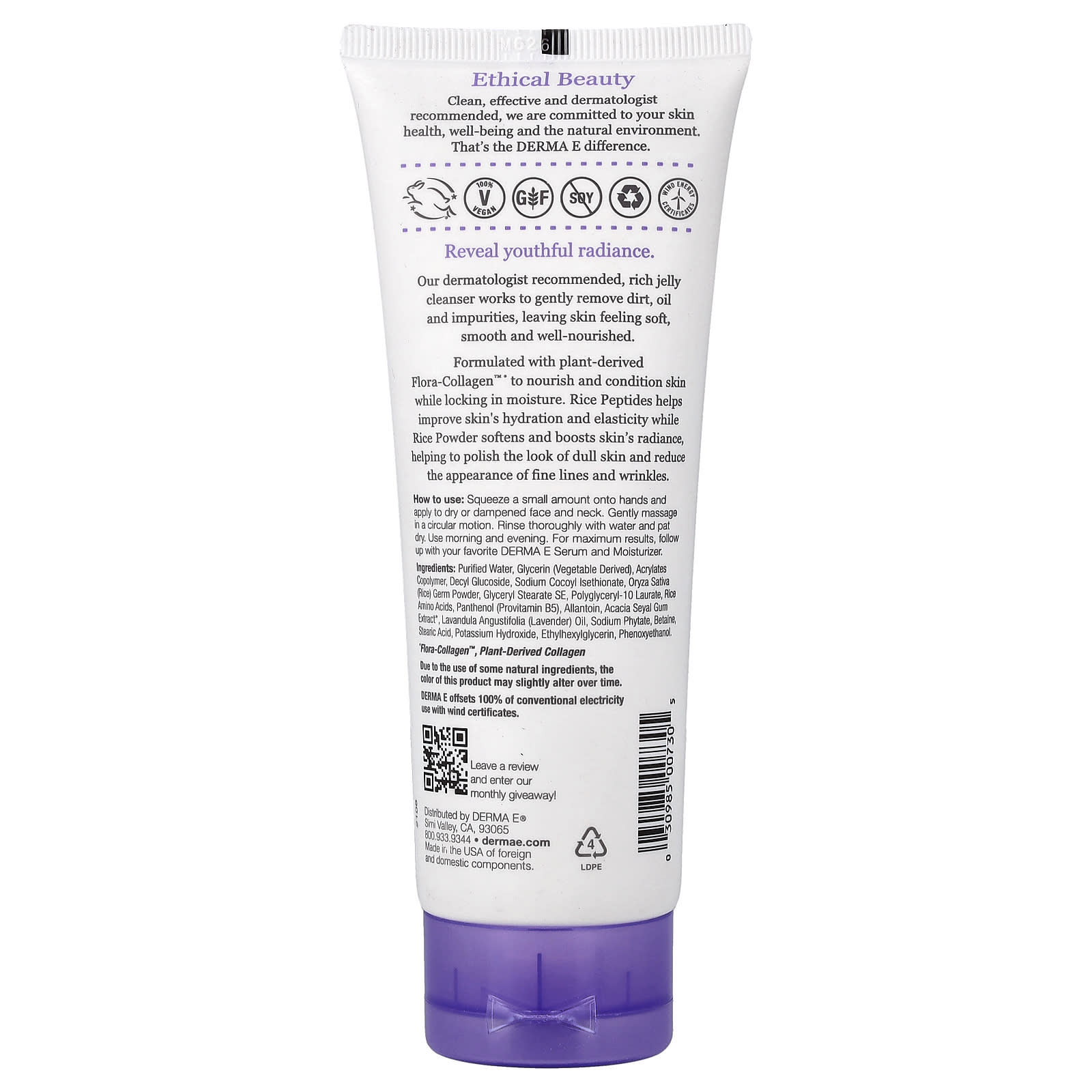 Выдавите небольшое количество средства на руки и нанесите на сухую или влажную кожу лица и шеи. Аккуратно помассируйте круговыми движениями. Тщательно смойте водой и промокните кожу насухо. Используйте утром и вечером. Для достижения максимальных результатов используйте свою любимую сыворотку и увлажняющее средство DERMA E.