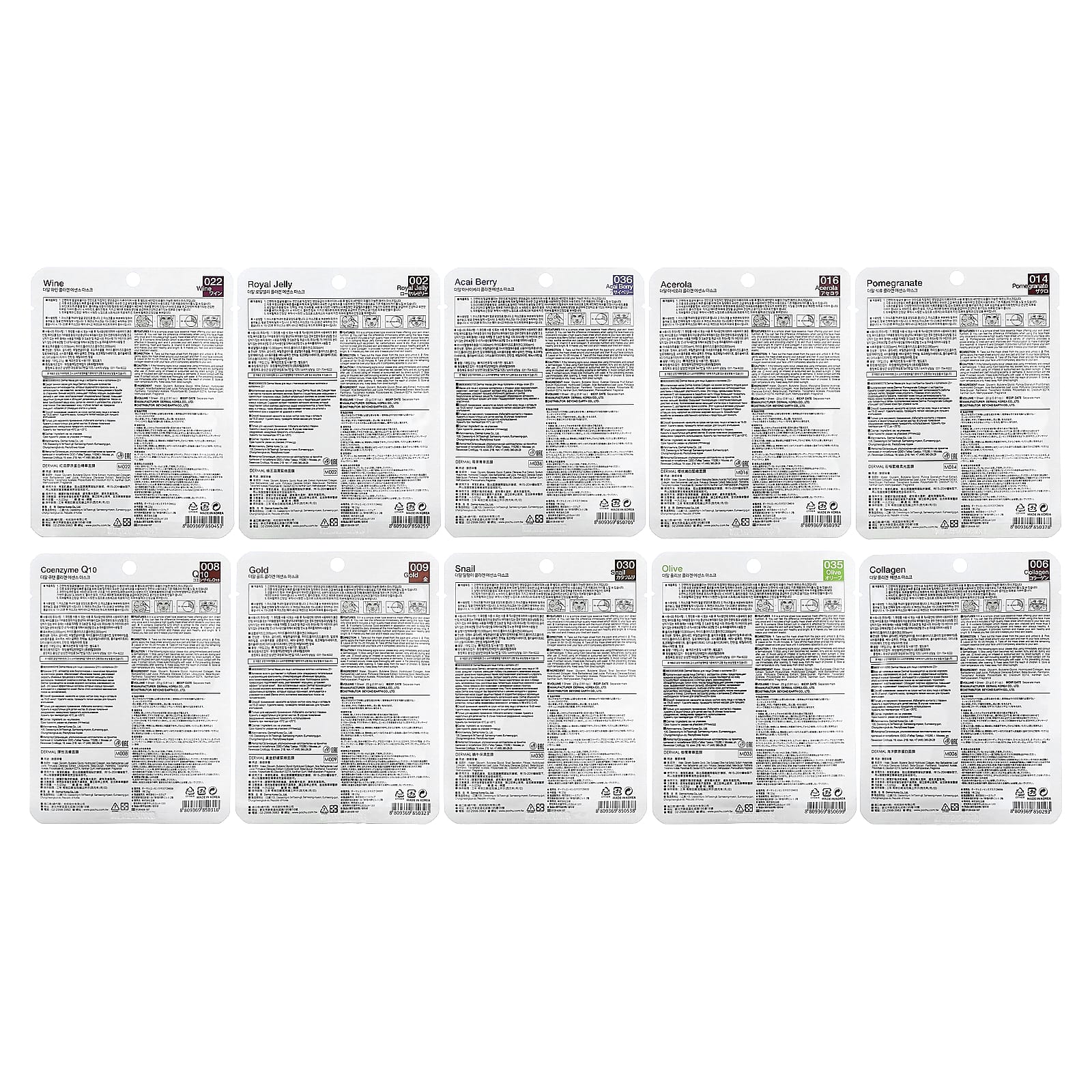 Маска с коллагеновой эссенцией из ягод асаи: Вода, глицерин, бутиленгликоль, экстракт ягод асаи (Euterpe oleracea), гиалуронат натрия, гидролизованный коллаген, сок листьев алоэ вера (Aloe barbadensis), экстракт портулака огородного (Portulaca oleracea), бета-глюкан, пантенол, токоферилацетат, полисорбат 80, двунатриевая ЭДТК, ксантановая камедь, метилпарабен, феноксиэтанол, отдушка.