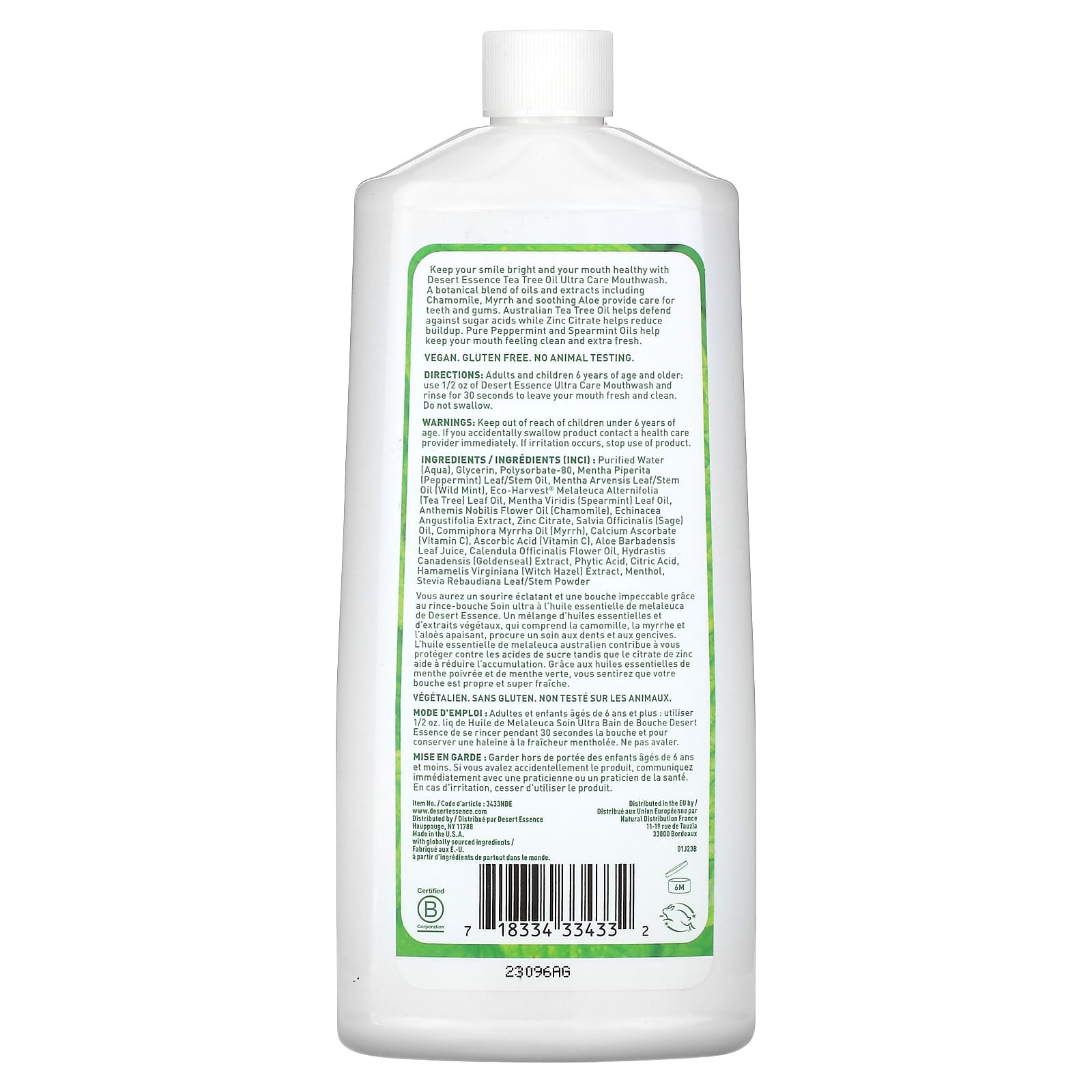 Сохраните яркую улыбку и здоровье ротовой полости с помощью ополаскивателя для рта с маслом чайного дерева от Desert Essence. Смесь растительных масел и экстрактов, включая ромашку, мирру и успокаивающее алоэ, обеспечивает полноценный уход за зубами и деснами. Масло австралийского чайного дерева помогает защититься от сахарных кислот, а цитрат цинка сокращает отложения зубного камня. Чистые масла перечной мяты и мяты колосистой помогут сохранить ощущение чистоты и свежести во рту.