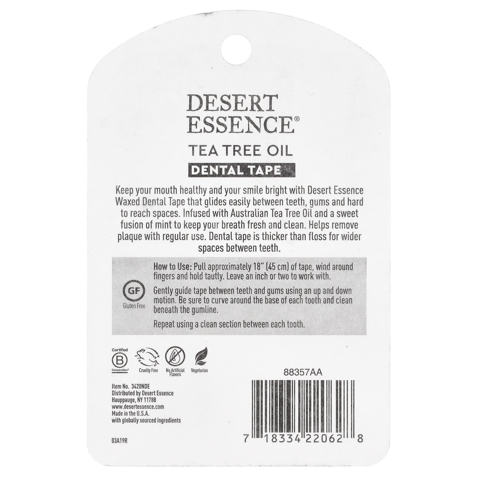 Зубная лента Desert Essence покрыта воском, насыщена антисептическим маслом чайного дерева.