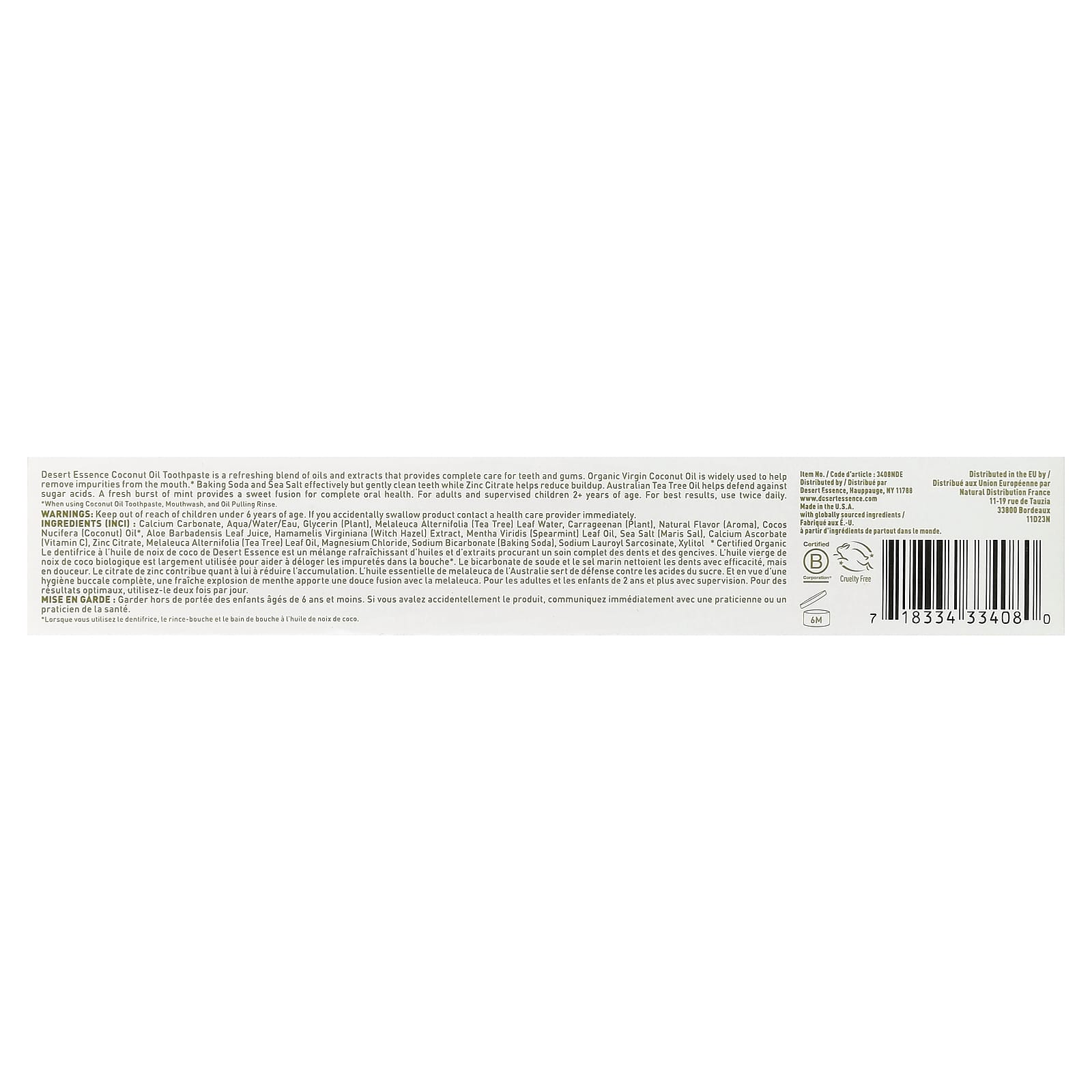 Зубная паста с кокосовым маслом Desert Essence — это освежающая смесь масел и экстрактов, которая обеспечивает комплексный уход за зубами и деснами. Органическое кокосовое масло первого отжима широко используется для удаления загрязнений изо рта*. Пищевая сода и морская соль эффективно и бережно очищают зубы, а цитрат цинка помогает уменьшить отложения. Масло австралийского чайного дерева обеспечивает защиту от сахарных кислот. Взрыв свежей мяты обеспечивает сладкое сочетание для здоровой полости рта.