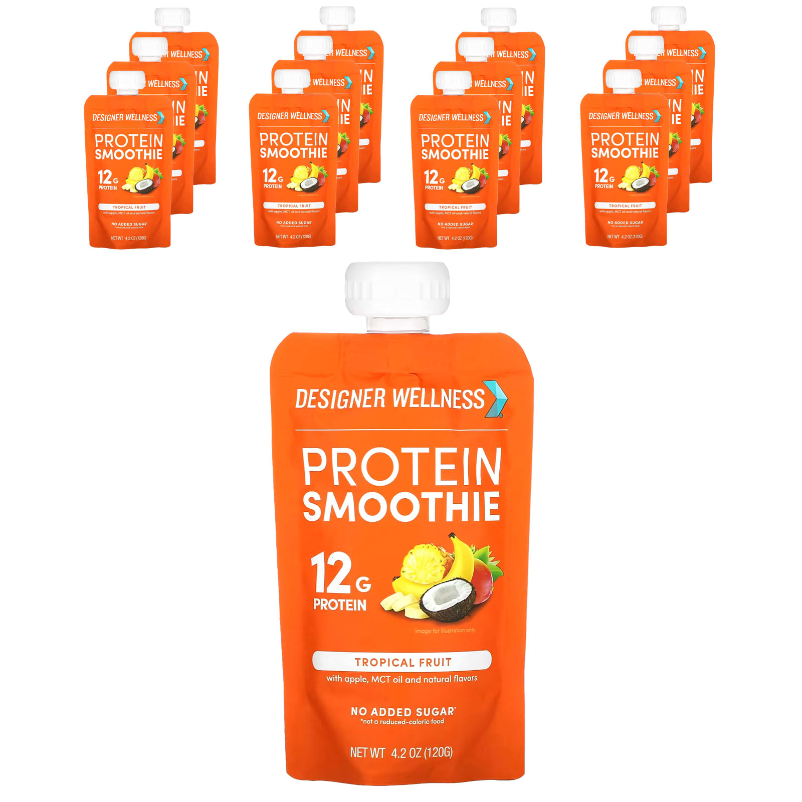 Designer Wellness, Протеиновый смузи, тропические фрукты, 12 пакетиков, 120 г (4,2 унции)