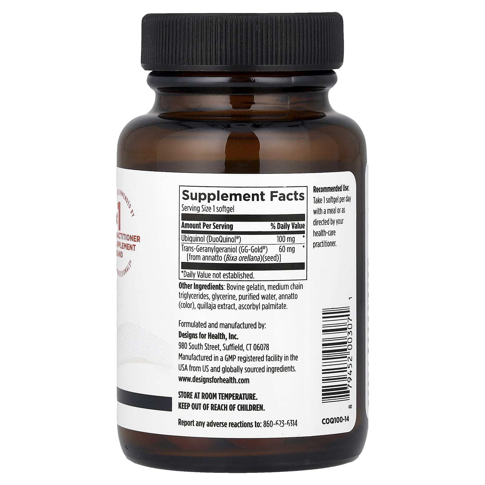 CoQnol™ 100 содержит уникальное сочетание убихинола и геранилгераниола (ГГ). ГГ дополняет действие убихинола, улучшая усвоение и поддерживая естественный синтез эндогенного коэнзима Q10 в организме. Эта формула содержит 100 мг убихинола в виде DuoQuinol® и 60 мг ГГ, экстрагированного из семян аннато, в каждой порции. В его состав входит экстракт килайи и среднецепочечные триглицериды для улучшенного усвоения и биодоступности убихинола и ГГ.