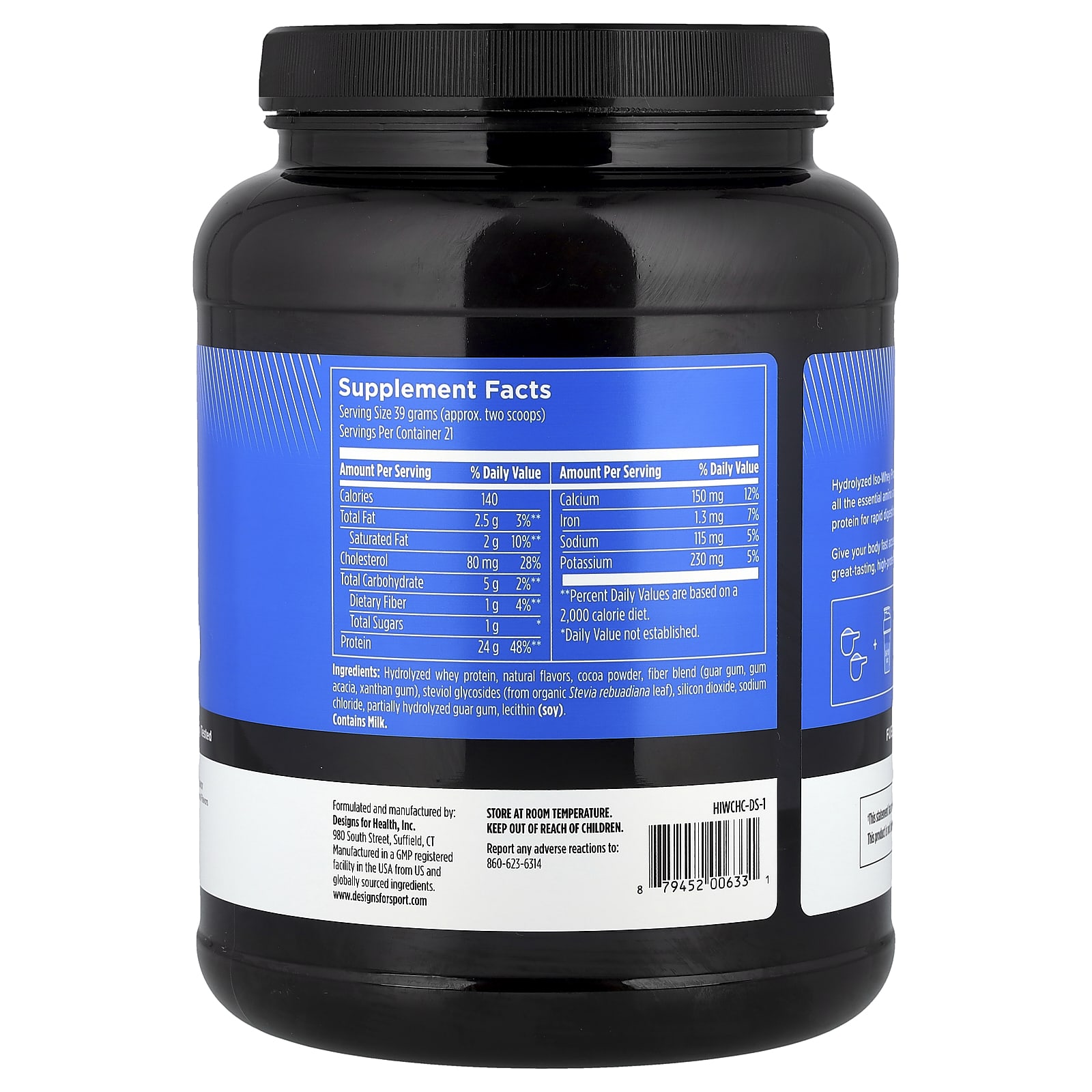Гидролизованный сывороточный протеин, натуральные ароматизаторы, какао-порошок, смесь волокон (гуаровая камедь, аравийская камедь, ксантановая камедь), стевиоловые гликозиды (из органических листьев Stevia rebuadiana), диоксид кремния, хлорид натрия, частично гидролизованная гуаровая камедь, лецитин (соя).