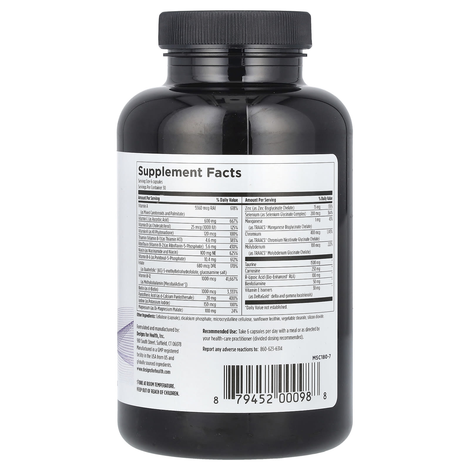 Metabolic Synergy ™ помогает поддерживать нормальный метаболизм глюкозы и инсулина, поддерживая преобразование углеводов, которые используются для получения энергии, обеспечивая питательные вещества для цикла трикарбоновых кислот (ТСА). Хром, цинк, селен, марганец и молибден представлены в виде настоящих хелатов для максимального усвоения и биодоступности. Эта формула также содержит оптимальные уровни R-липоевой кислоты, таурина и карнозина для поддержки здорового метаболизма глюкозы.