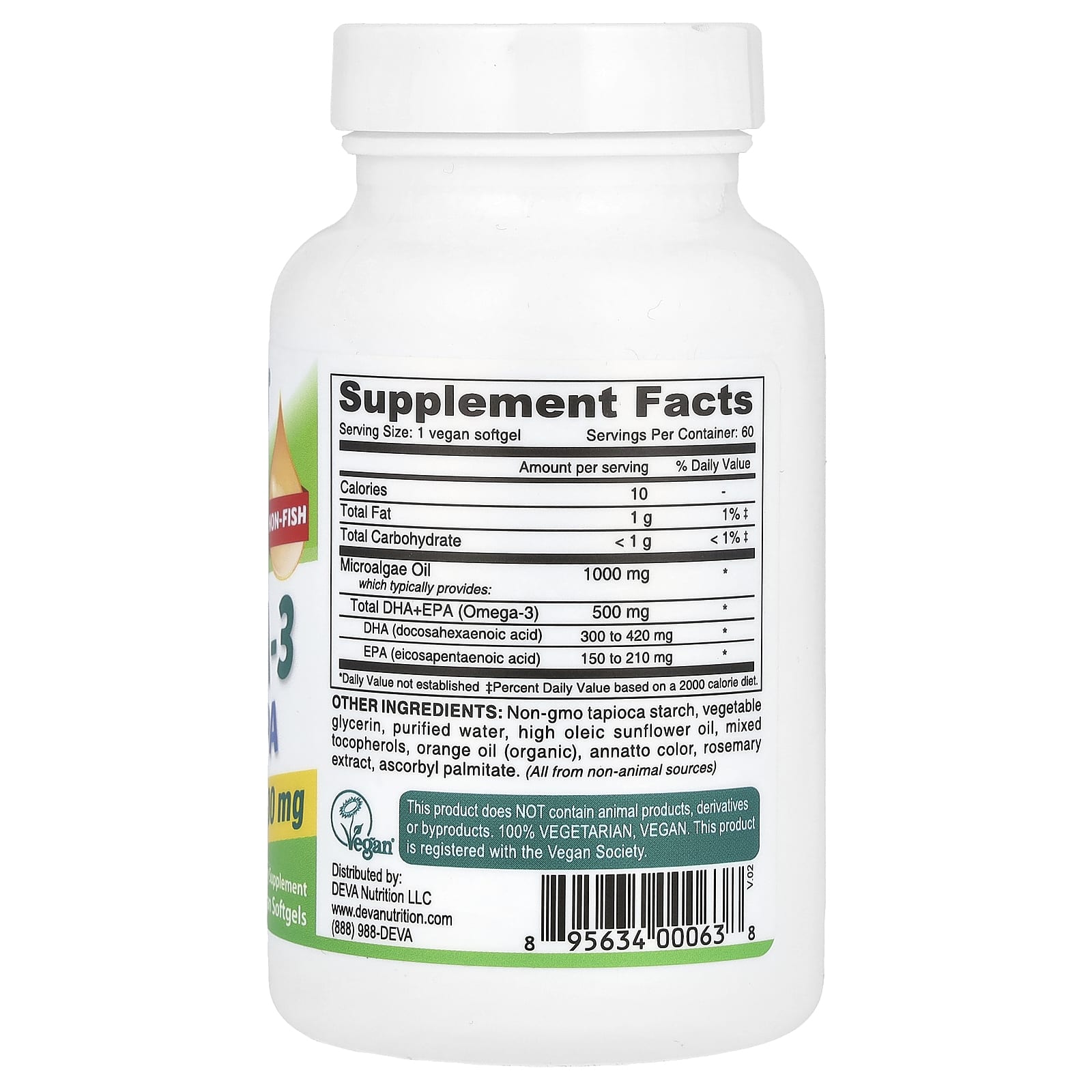 Изготовлено из масла, содержащего омега-3 и полученного из микроводорослей, выращенных за пределами океана.