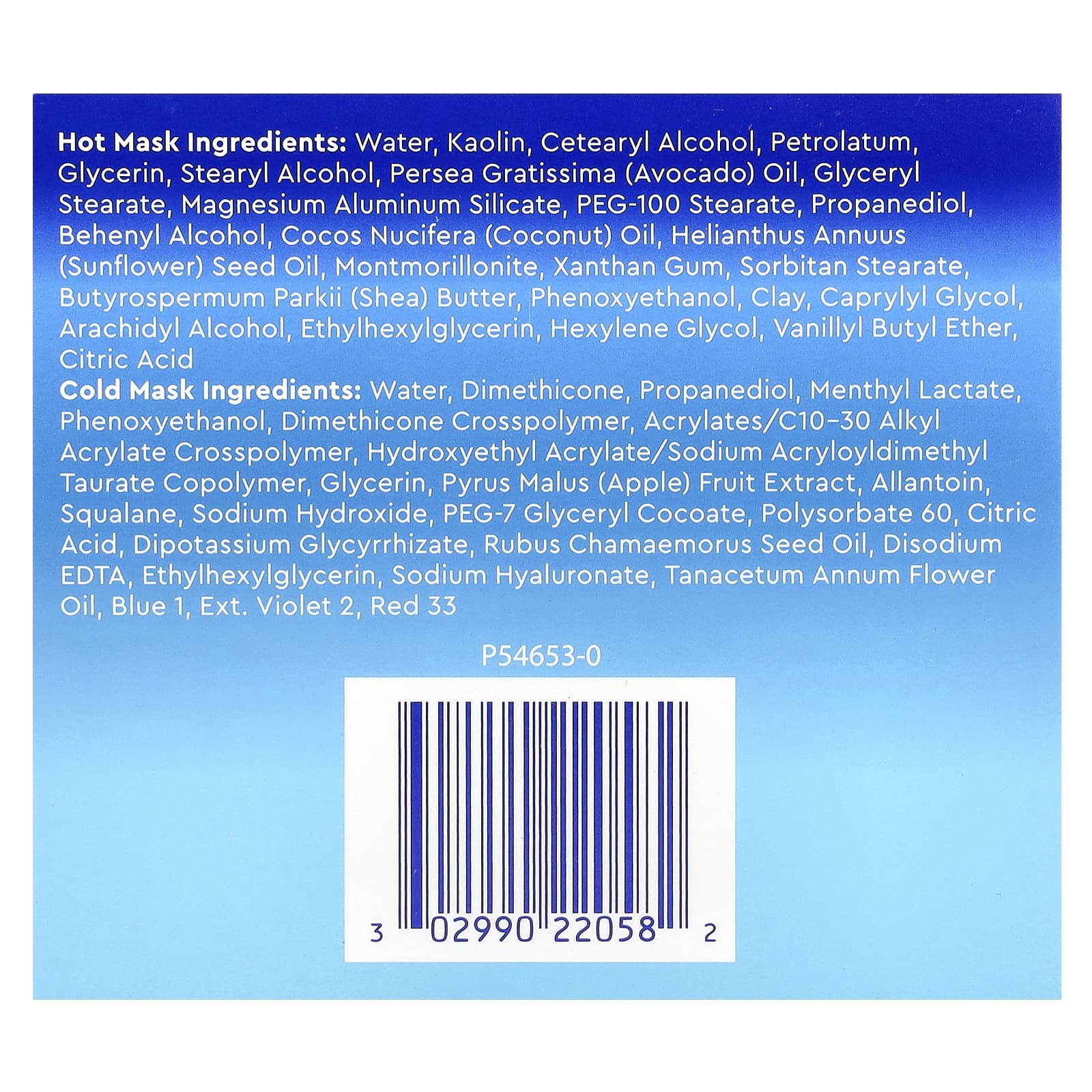 Ингредиенты для горячей маски: Вода, каолин, цетеариловый спирт, вазелин, глицерин, стеариловый спирт, масло авокадо (Persea gratissima), глицерил стеарат, алюмосиликат магния, ПЭГ-100 стеарат, пропандиол, бегениловый спирт, кокосовое масло (Cocos nucifera), подсолнечное масло (Helianthus annuus), монтмориллонит, ксантановая камедь, сорбитанстеарат, масло ши (Butyrospermum parkii), феноксиэтанол, глина, каприлилгликоль, арахидиловый спирт, этилгексилглицерин, гексиленгликоль, ванилилбутиловый эфир, лимонная кислота.
