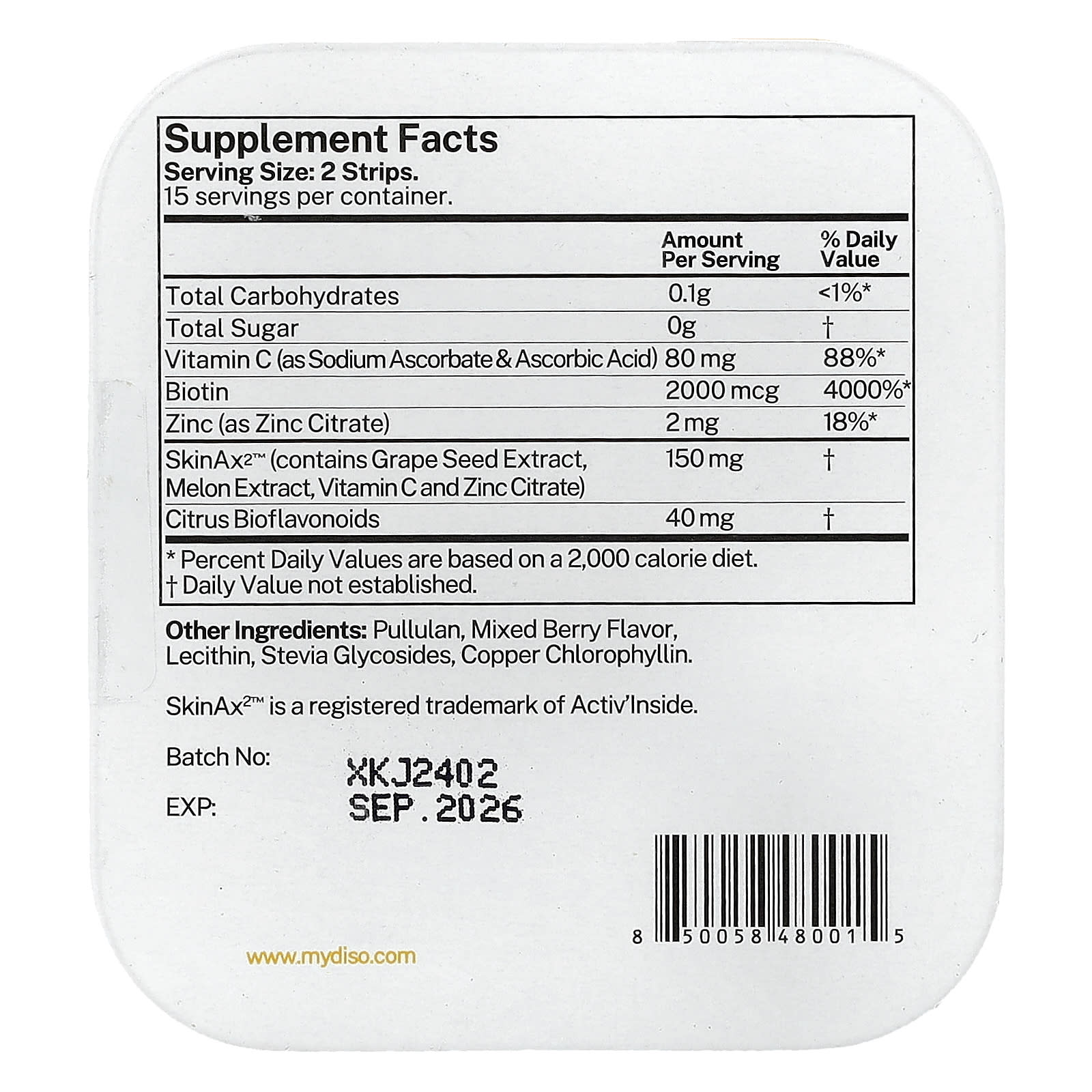 Принимать по 2 полоски в день, желательно во время еды. Поместите полоску Diso® на язык и дайте ей раствориться.