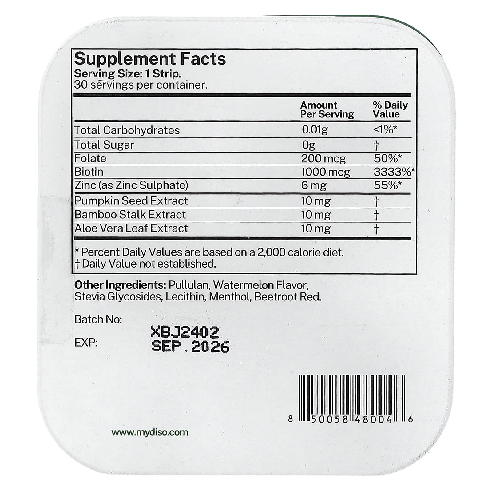 Принимать по 1 полоске в день, желательно во время еды. Поместите полоску Diso® на язык и дайте ей раствориться.