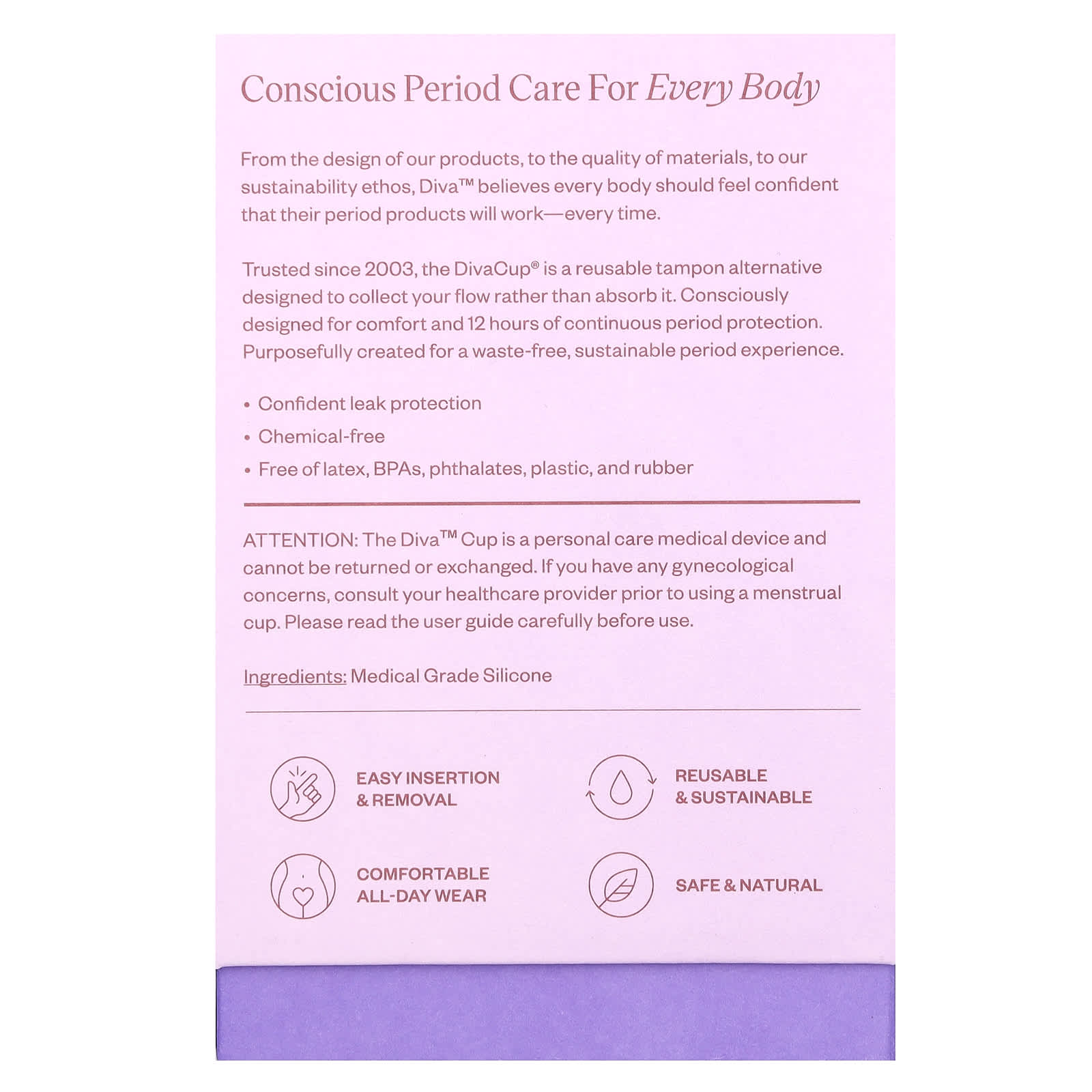 Внимание. Чашка Diva™ — это медицинское средство для личного ухода, которое не может быть возвращено или обменено. В случае возникновения каких-либо гинекологических проблем перед использованием менструальной чаши проконсультируйтесь с врачом. Перед использованием внимательно прочтите руководство пользователя.